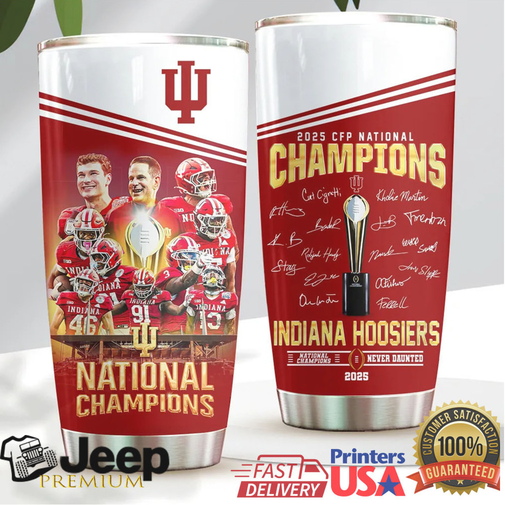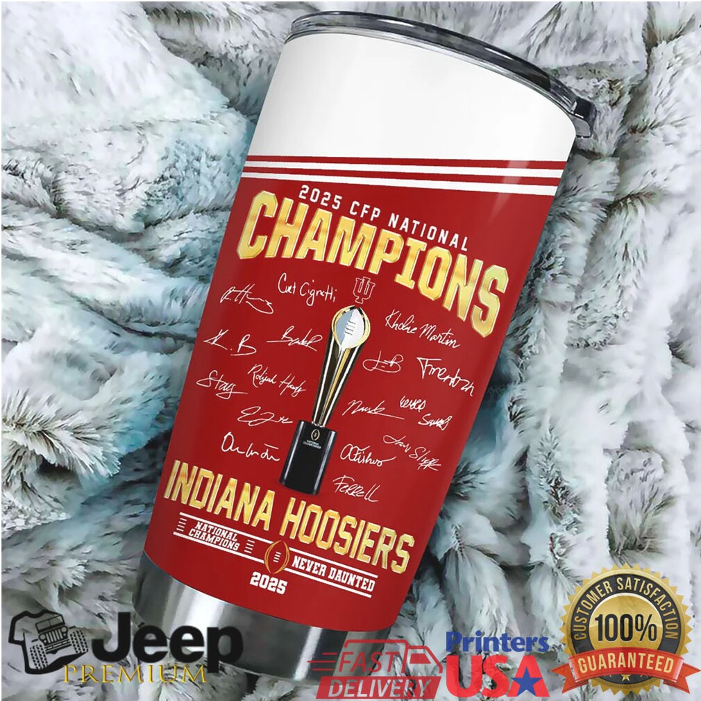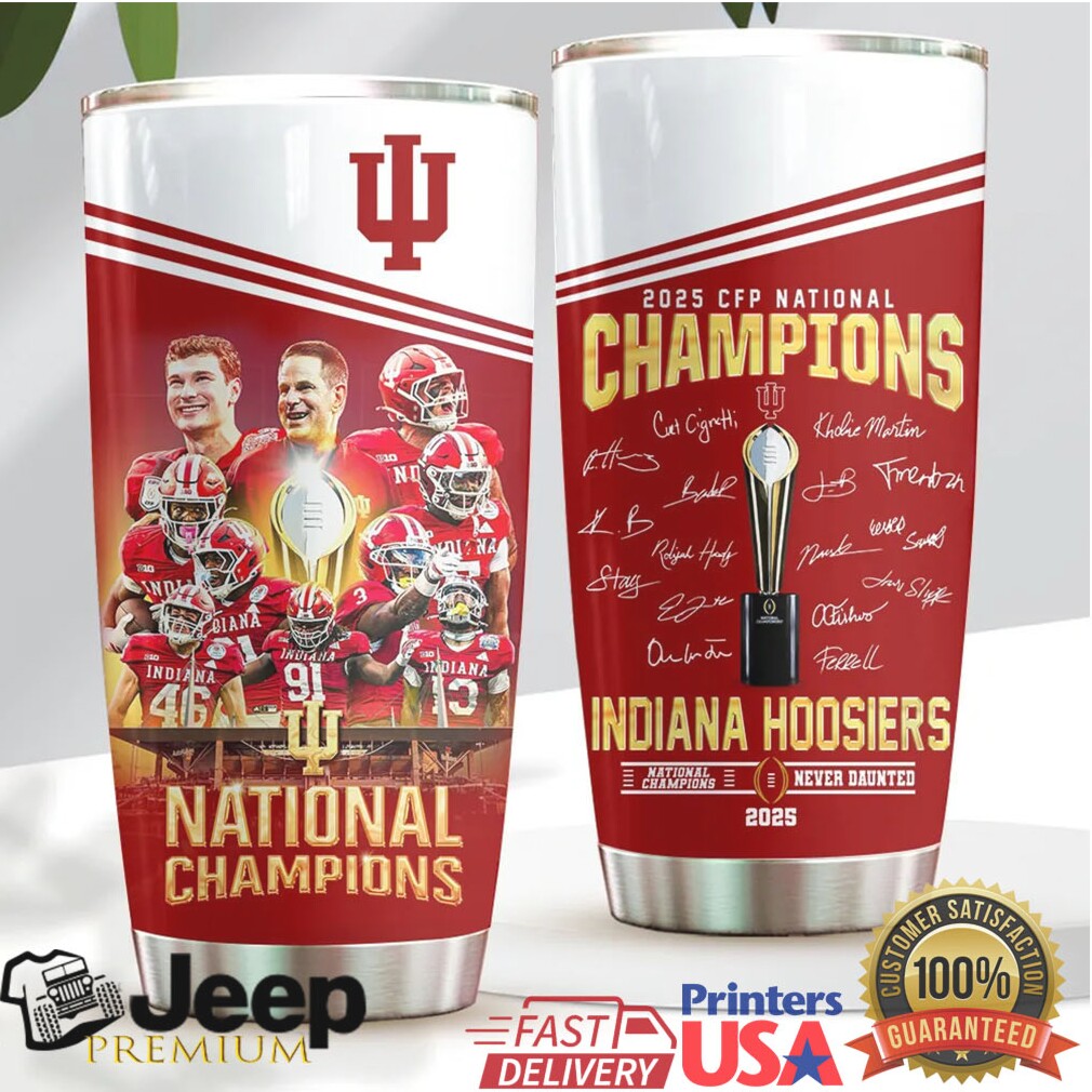 (2025 CFP National Champions Indiana Hoosiers Signed Trophy Red & White Tumbler)Built for the Journey, Styled for You Whether it’s your morning caffeine kick or a refreshing ice-cold drink after a long day, the Teejeep Premium Steel Tumbler is engineered to keep your beverages at the perfect temperature. Sleek, rugged, and ready for anything.