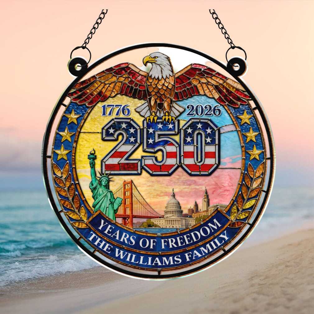 (250 Years of Freedom Stained Glass Style American Landmarks Ornament)