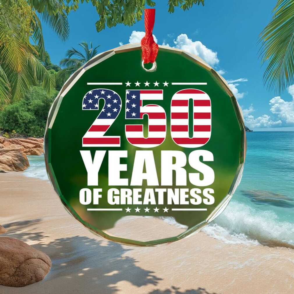 🥤 About 250 Years of Greatness American Flag Text Crystal Style Ornament