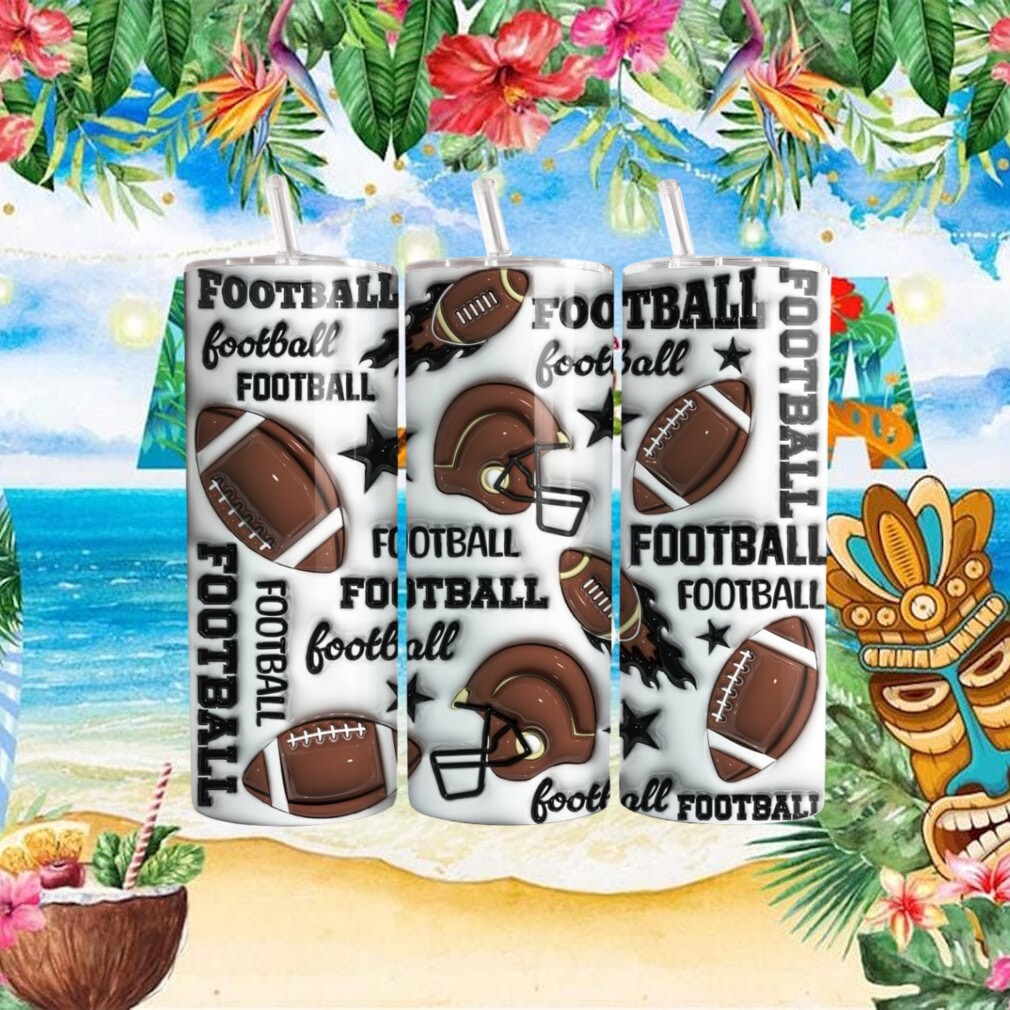 (3D Puffy Football Pattern White Sports Fan Skinny Tumbler Wrap)3D Puffy Football Pattern White Sports Fan Skinny Tumbler Wrap, Treat yourself or make a great gift for your loved ones