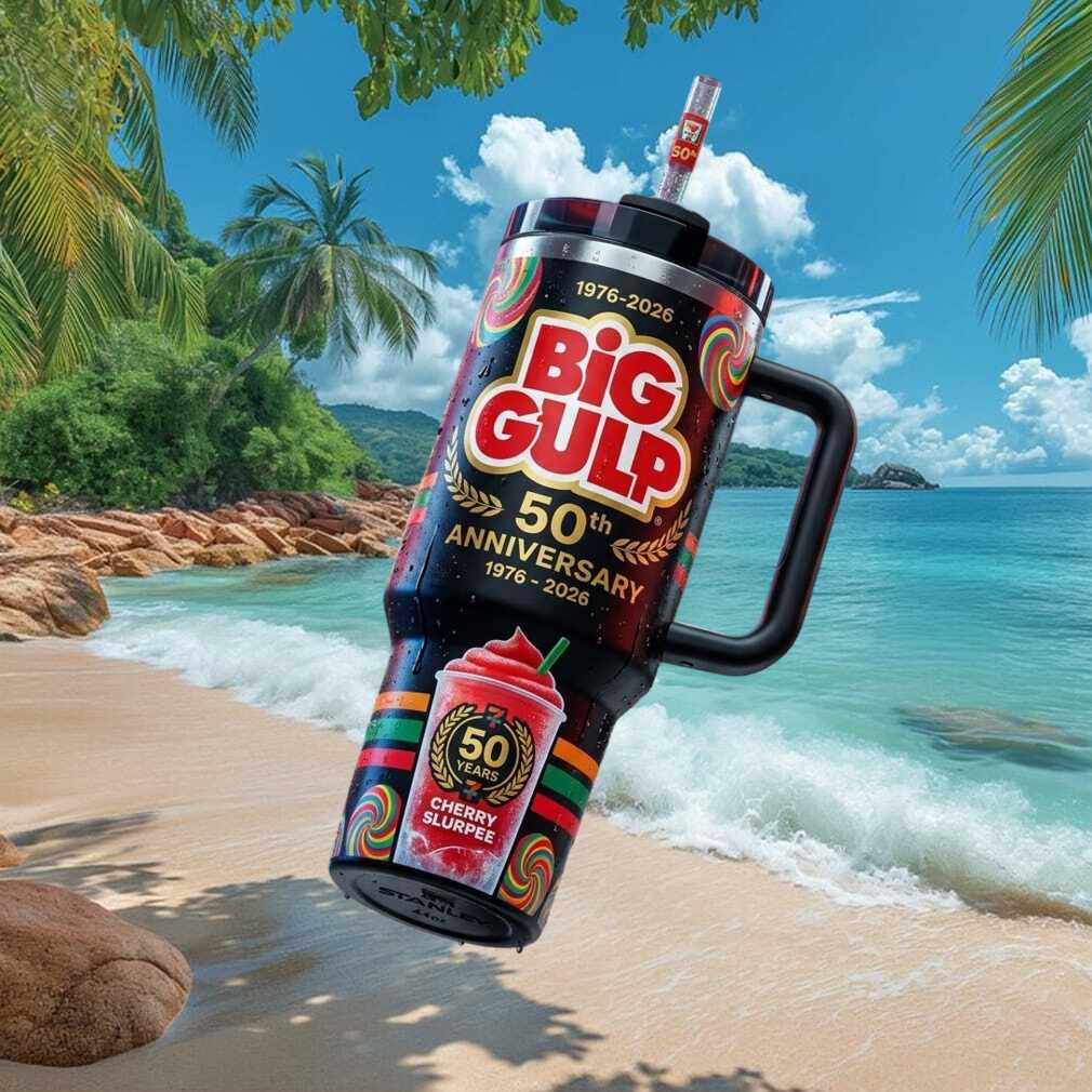 Relive the nostalgic joy of a Cherry Slurpee with this fun 50th Anniversary 7-Eleven Big Gulp travel tumbler. Bold retro branding, vibrant cherry red design, and 40oz capacity make this the perfect novelty companion for on-the-go drinks.
