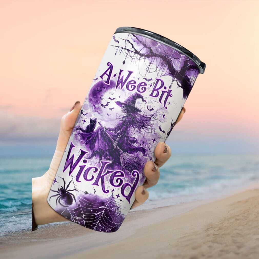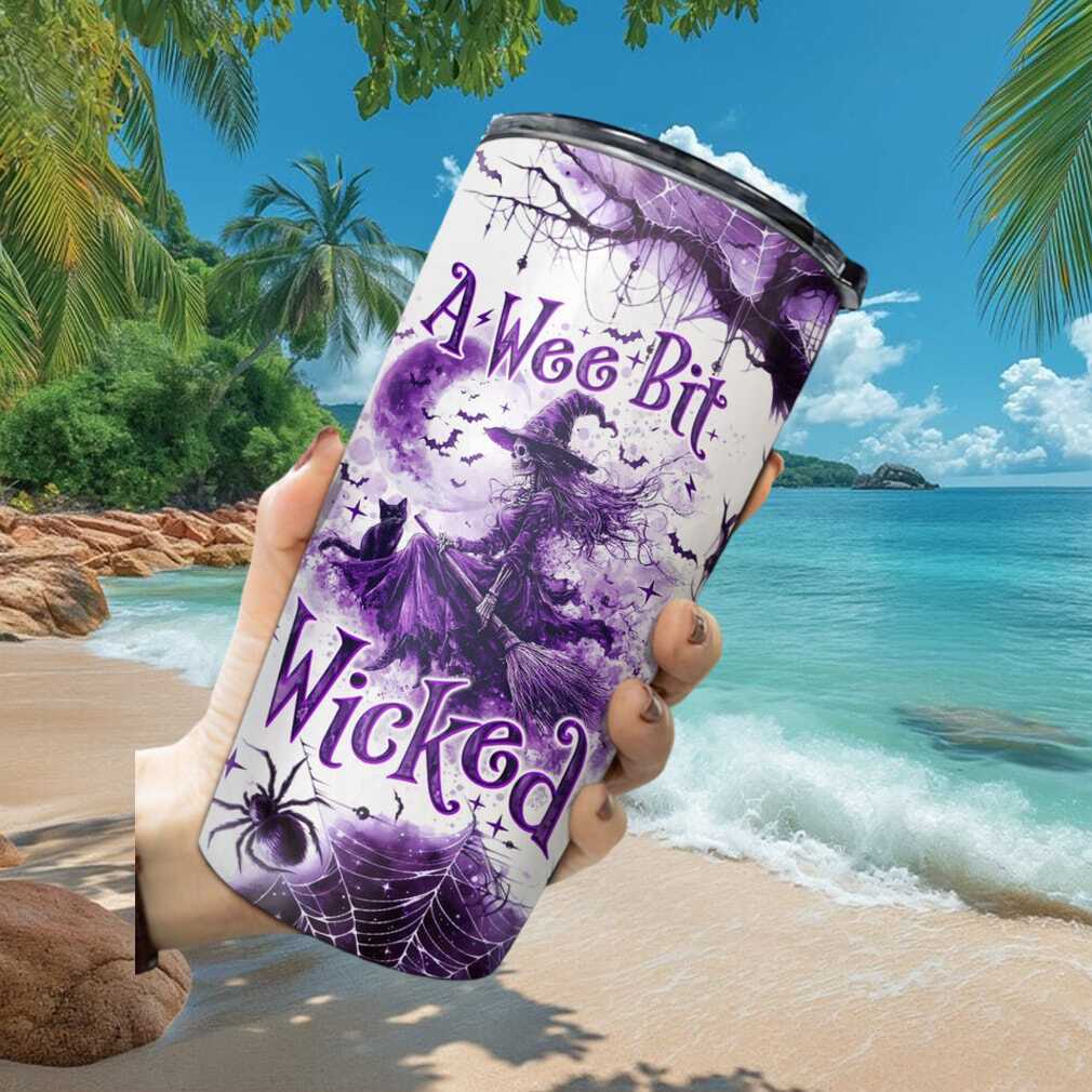 🥤 About A Wee Bit Wicked Skeleton Witch Flying On Broomstick Halloween Tumbler