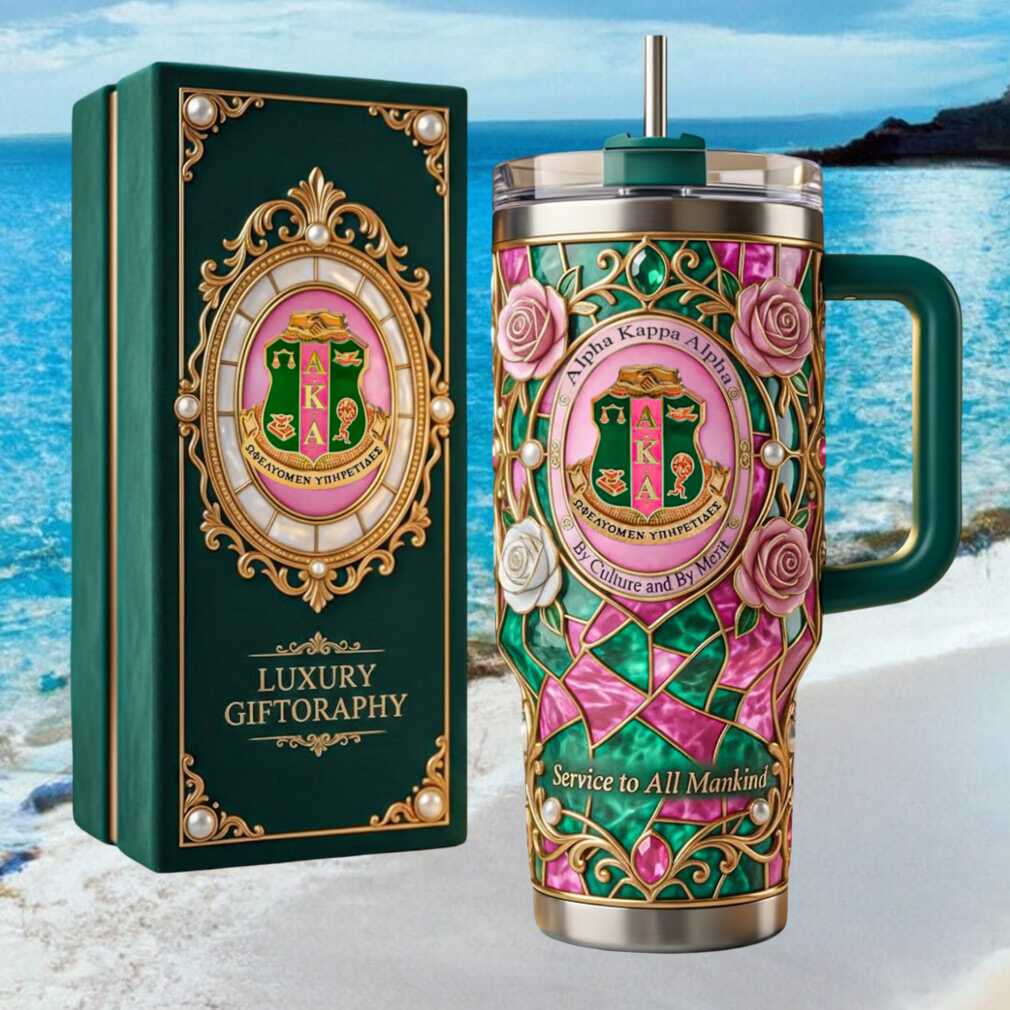 (AKA Sorority Luxury Giftography 40oz Tumbler Shield and Roses Mosaic Design)AKA Sorority Luxury Giftography 40oz Tumbler Shield and Roses Mosaic Design, Treat yourself or make a great gift for your loved ones