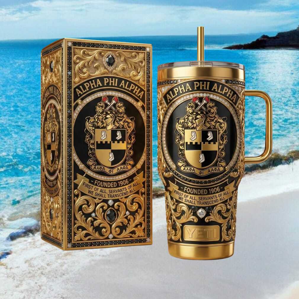 (Alpha Phi Alpha Fraternity Black & Gold Jeweled 1906 Crest Tumbler)Alpha Phi Alpha Fraternity Black & Gold Jeweled 1906 Crest Tumbler, Treat yourself or make a great gift for your loved ones
