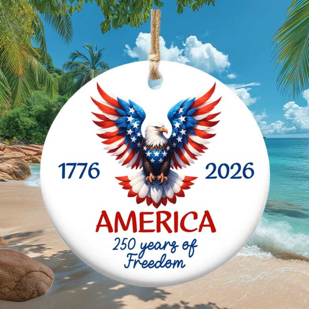 🥤 About America 250 Years of Freedom Patriotic Eagle 1776 2026 Ornament