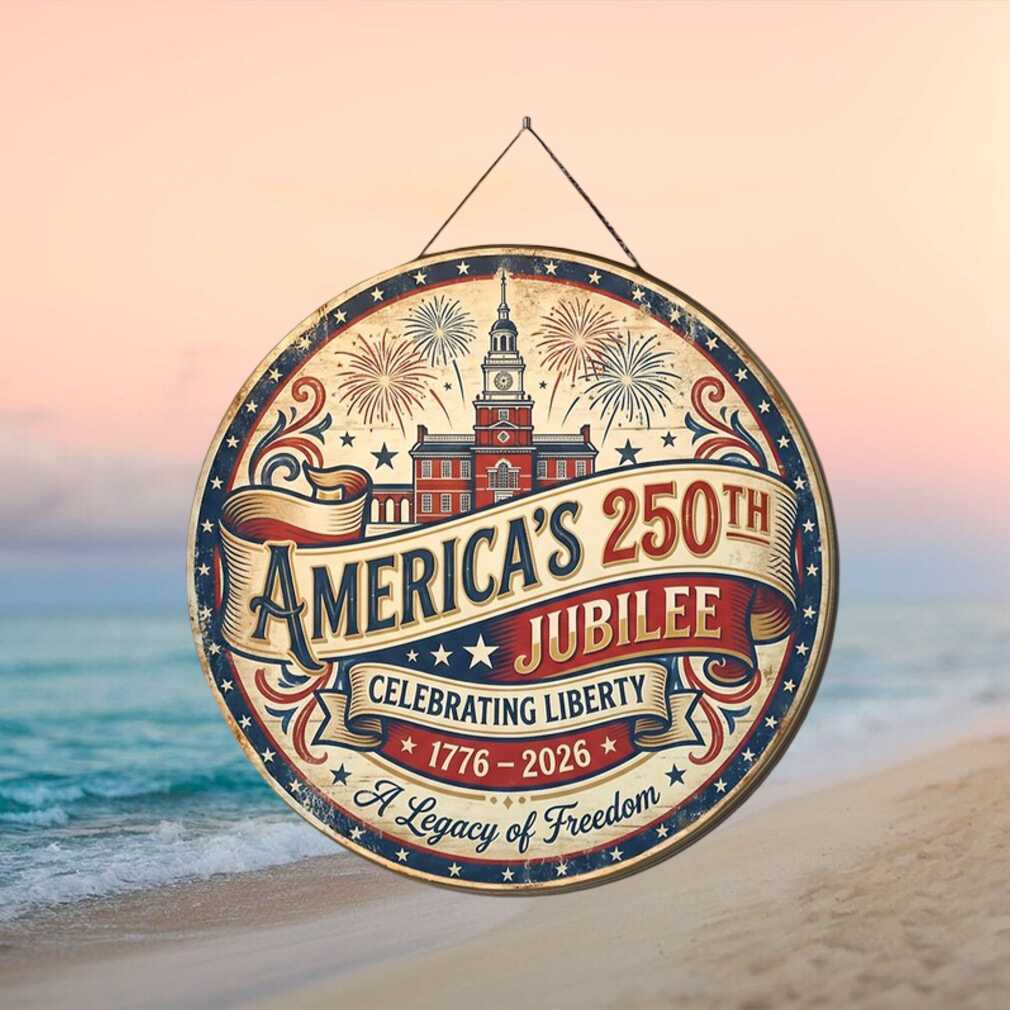 Inspired by vintage Americana, this ornament features a classic label-style design celebrating ‘America’s 250th Jubilee – A Legacy of Freedom’ from 1776 to 2026. The retro aesthetic and rich patriotic tones make it a distinctive and collectible piece for history enthusiasts.