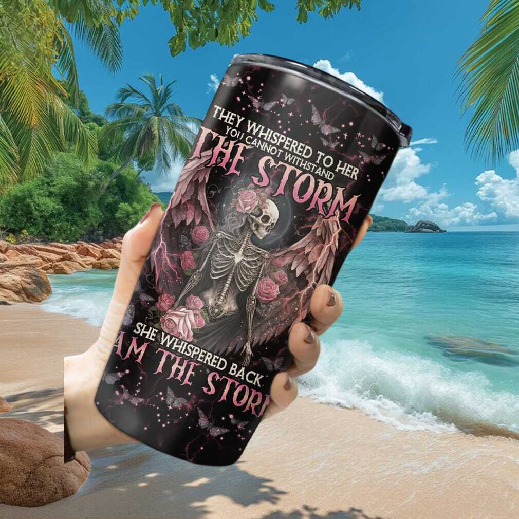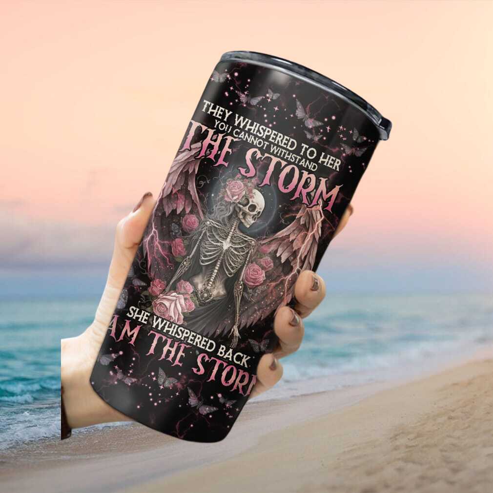 🥤 About Angel Wing Skeleton I Am The Storm Pink Rose Tumbler