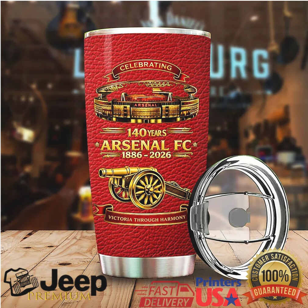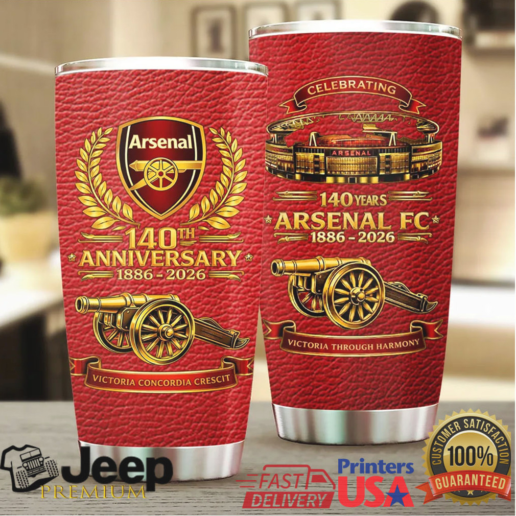 (Arsenal FC 140th Anniversary 1886 2026 Red Leather Style Fan Tumbler)