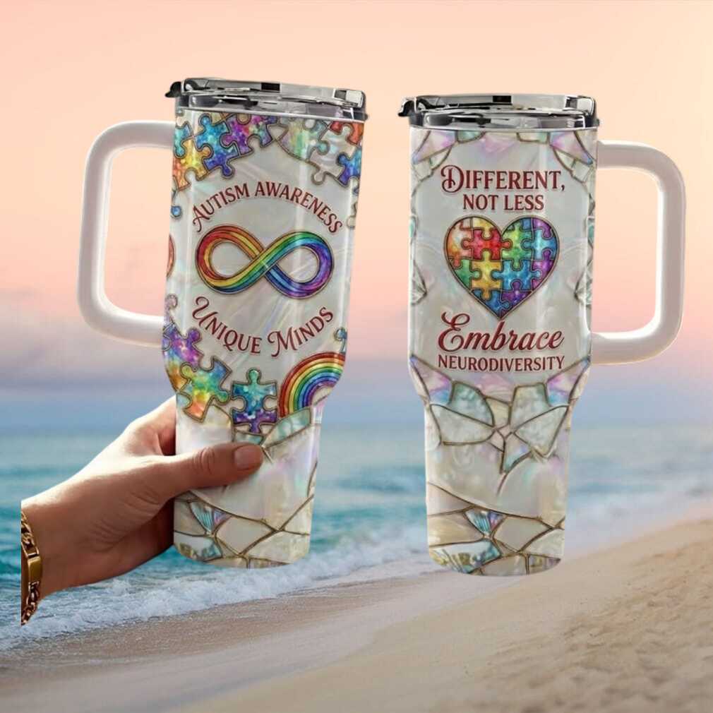Wear your support proudly with the Autism Awareness Neurodiversity Infinity Rainbow 40Oz tumbler. This meaningful drinkware raises awareness while keeping your beverages at the ideal temperature — a thoughtful gift that makes a real statement.