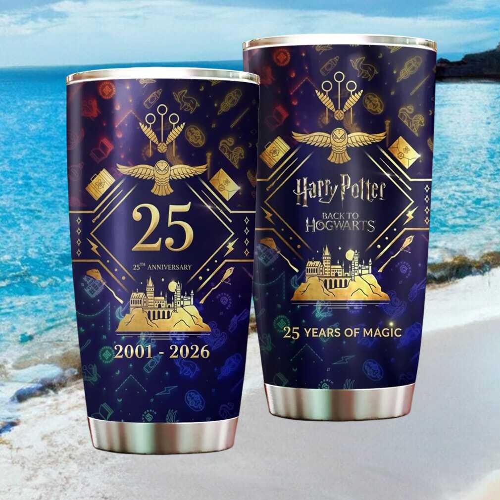 Back to Hogwarts 25th Anniversary 2001 2026 Golden Icons Navy Tumbler, Treat yourself or make a great gift for your loved ones