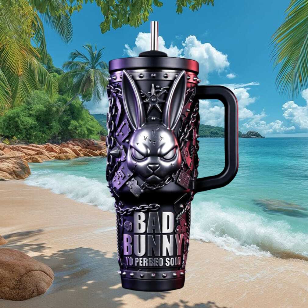 🥤 About Bad Bunny “Yo Perreo Solo” 3D Sculpted 40oz Tumbler with Handle