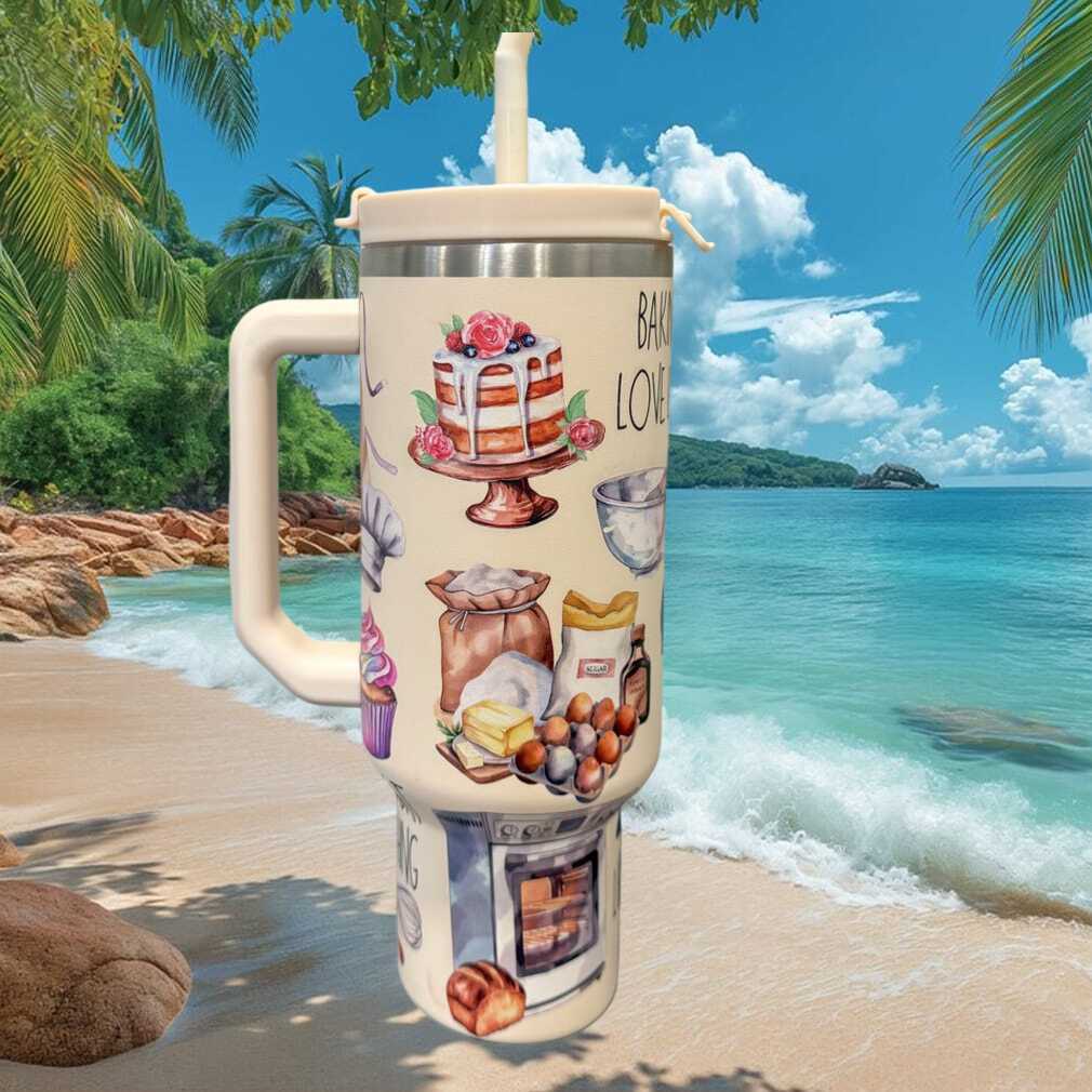 (Baking Is My Love Language Pastel Kitchen Illustrations 40oz Tumbler)Baking Is My Love Language Pastel Kitchen Illustrations 40oz Tumbler, Treat yourself or make a great gift for your loved ones