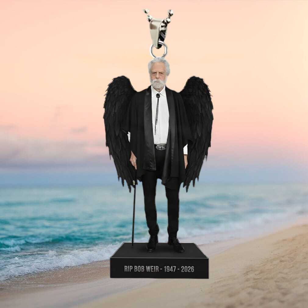A touching memorial ornament honoring Grateful Dead co-founder Bob Weir (1947–2026), adorned with angel wings. Carry the spirit of this beloved guitarist and songwriter wherever you go.