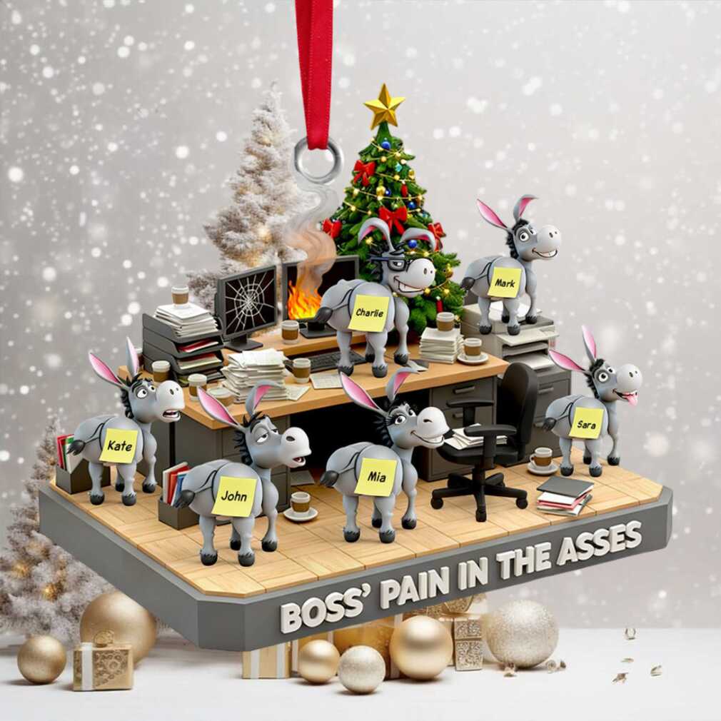This ornament is perfect for teams with a relaxed and humorous atmosphere, offices that celebrate quirky traditions, or anyone looking for a memorable Secret Santa gift. It’s an ideal choice for coworkers who appreciate a good laugh and aren’t afraid to poke fun at themselves or the boss (in a good-natured way, of course!). Imagine the laughs as they unwrap this personalized, donkey-themed ornament – a hilarious reminder of your unique office dynamic.