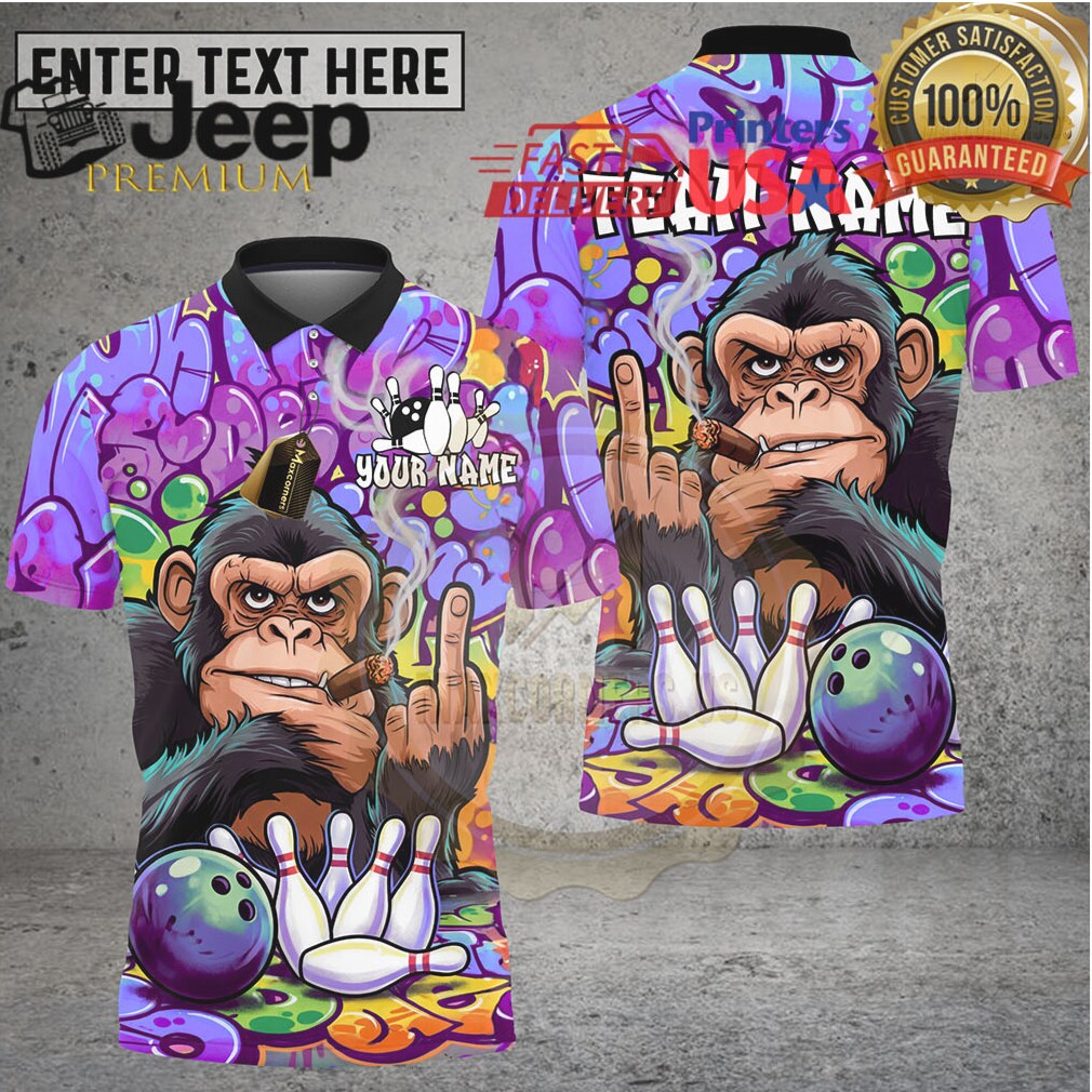 (Bowling Shirt Cool Chimp Smoking Cigar Graffiti Art Multioptions Personalized Name, Team Name 3D Shirt)Bowling Shirt Cool Chimp Smoking Cigar Graffiti Art Multioptions Personalized Name, Team Name 3D Shirt, Treat yourself or make a great gift for your loved ones