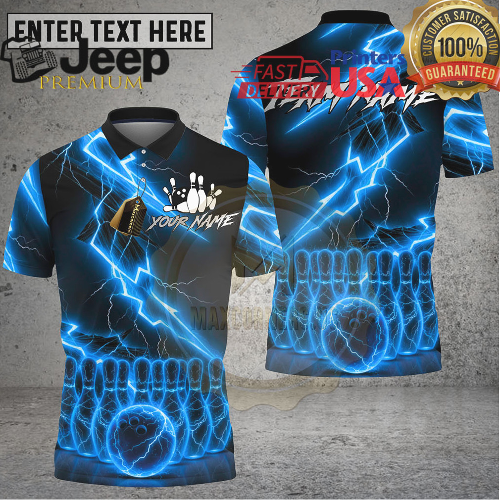 (Bowling Shirt Cyan Electric Lightning Strike Effect Multioptions Personalized Name, Team Name 3D Shirt)Bowling Shirt Cyan Electric Lightning Strike Effect Multioptions Personalized Name, Team Name 3D Shirt, Treat yourself or make a great gift for your loved ones