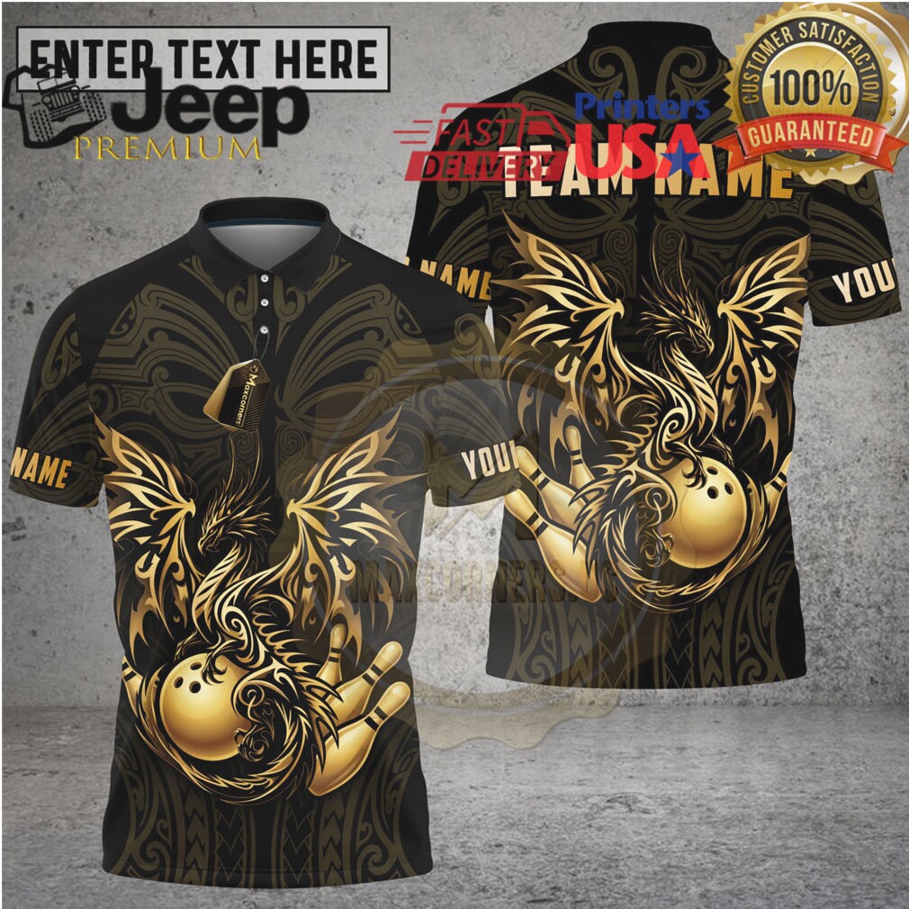 (Bowling Shirt Golden Dragon Flowing Ornamental Art Multioptions Personalized Name, Team Name 3D Shirt)Bowling Shirt Golden Dragon Flowing Ornamental Art Multioptions Personalized Name, Team Name 3D Shirt, Treat yourself or make a great gift for your loved ones