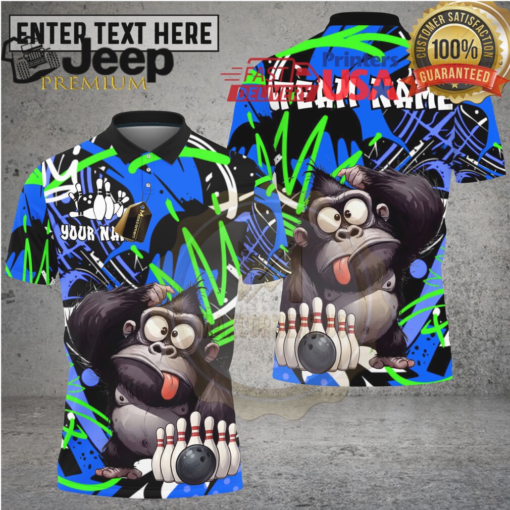 (Bowling Shirt Gorilla Character Blue Green Graffiti Splash Multioptions Personalized Name, Team Name 3D Shirt)Bowling Shirt Gorilla Character Blue Green Graffiti Splash Multioptions Personalized Name, Team Name 3D Shirt, Treat yourself or make a great gift for your loved ones