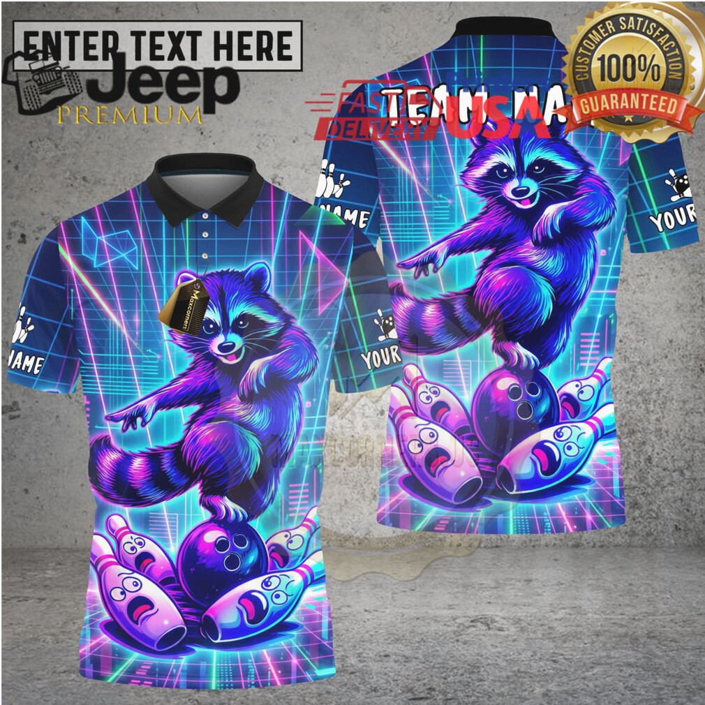 (Bowling Shirt Retro Neon Raccoon Synthwave Grid Design Multioptions Personalized Name, Team Name 3D Shirt)Bowling Shirt Retro Neon Raccoon Synthwave Grid Design Multioptions Personalized Name, Team Name 3D Shirt, Treat yourself or make a great gift for your loved ones
