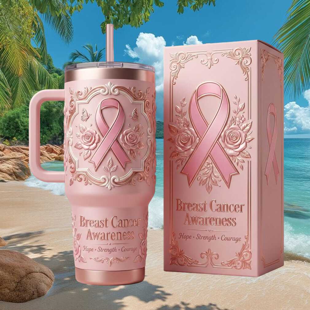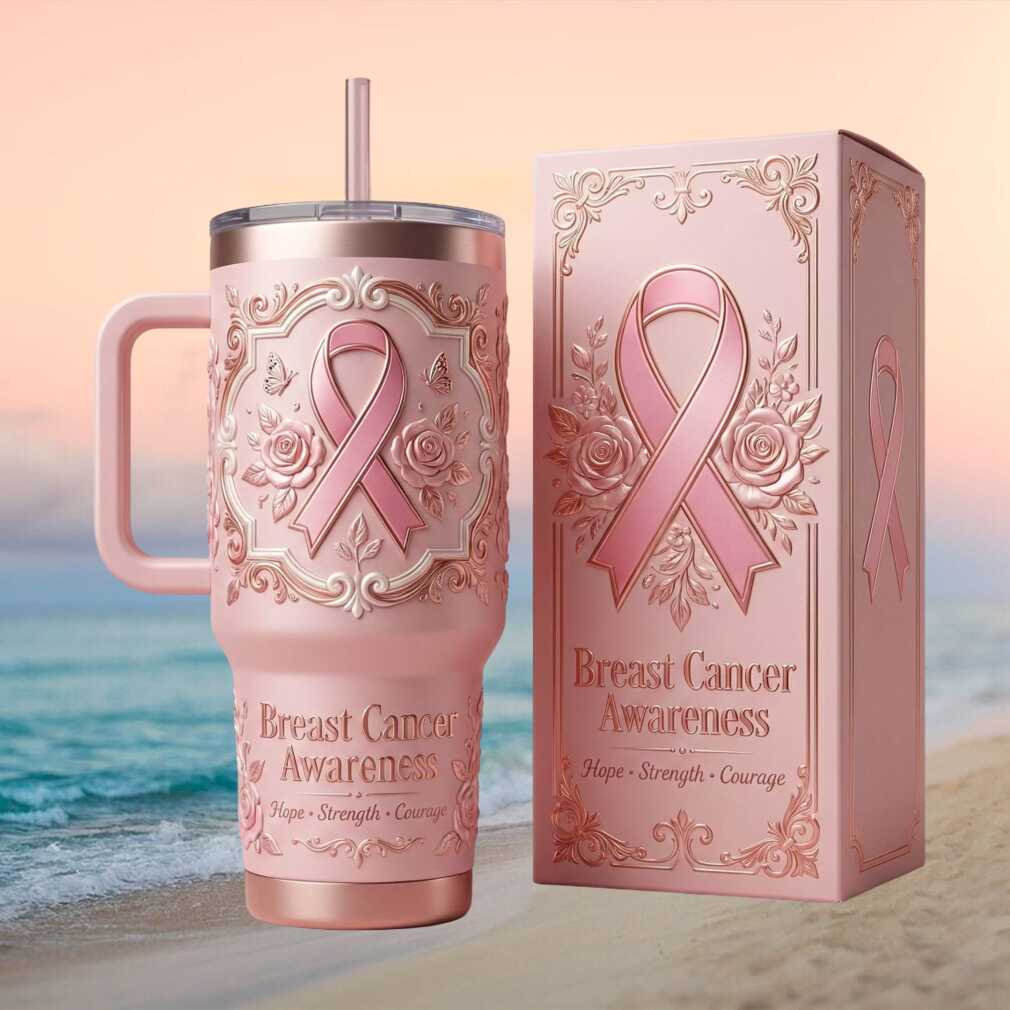 A beautiful floral tribute to the power of hope, strength, and courage. This pink floral embossed 40oz tumbler is designed for those touched by breast cancer — survivors, fighters, and their supporters. Delicate raised floral details surround the iconic pink ribbon in this elegant and meaningful collectible.