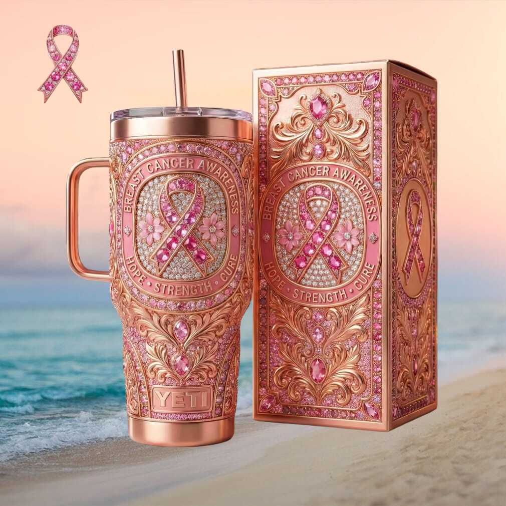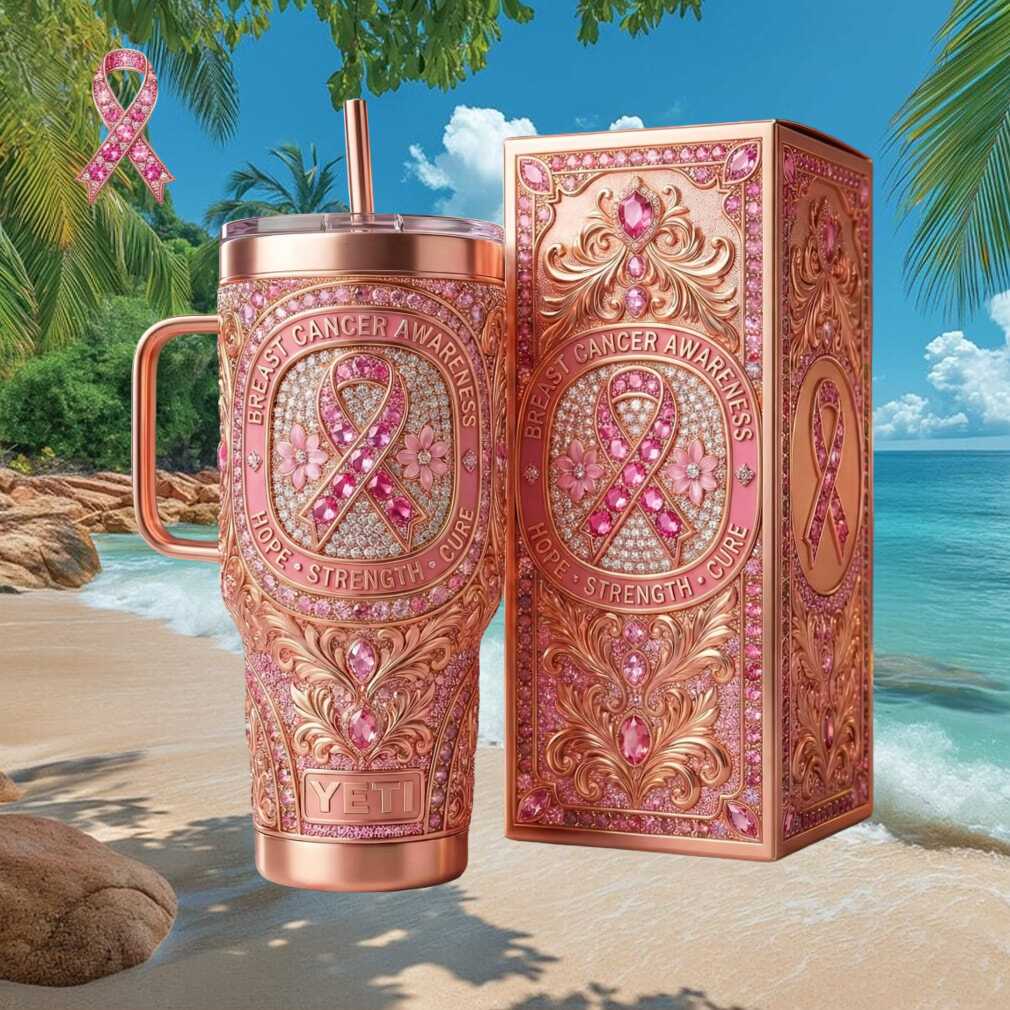 🥤 About Breast Cancer Awareness Hope Strength Cure Pink Ribbon 3D Floral Jeweled Tumbler