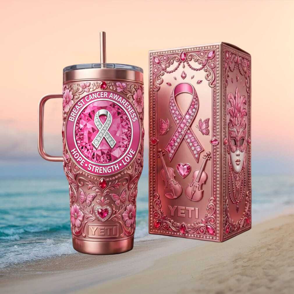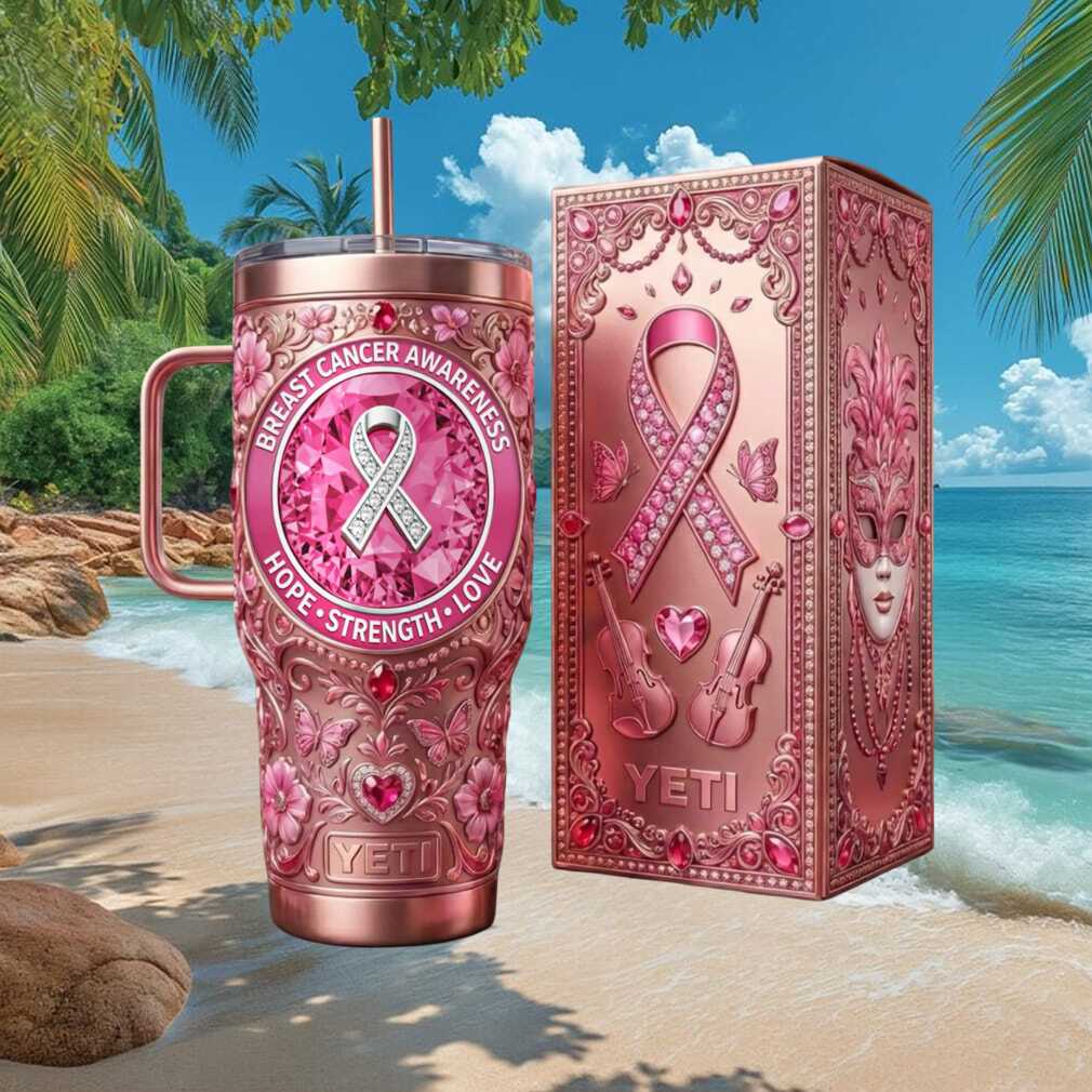 🥤 About Breast Cancer Awareness Hope Strength Love Pink Ribbon 40oz Tumbler