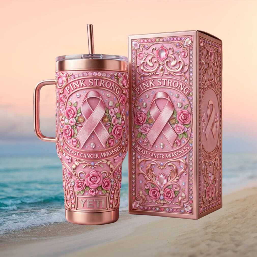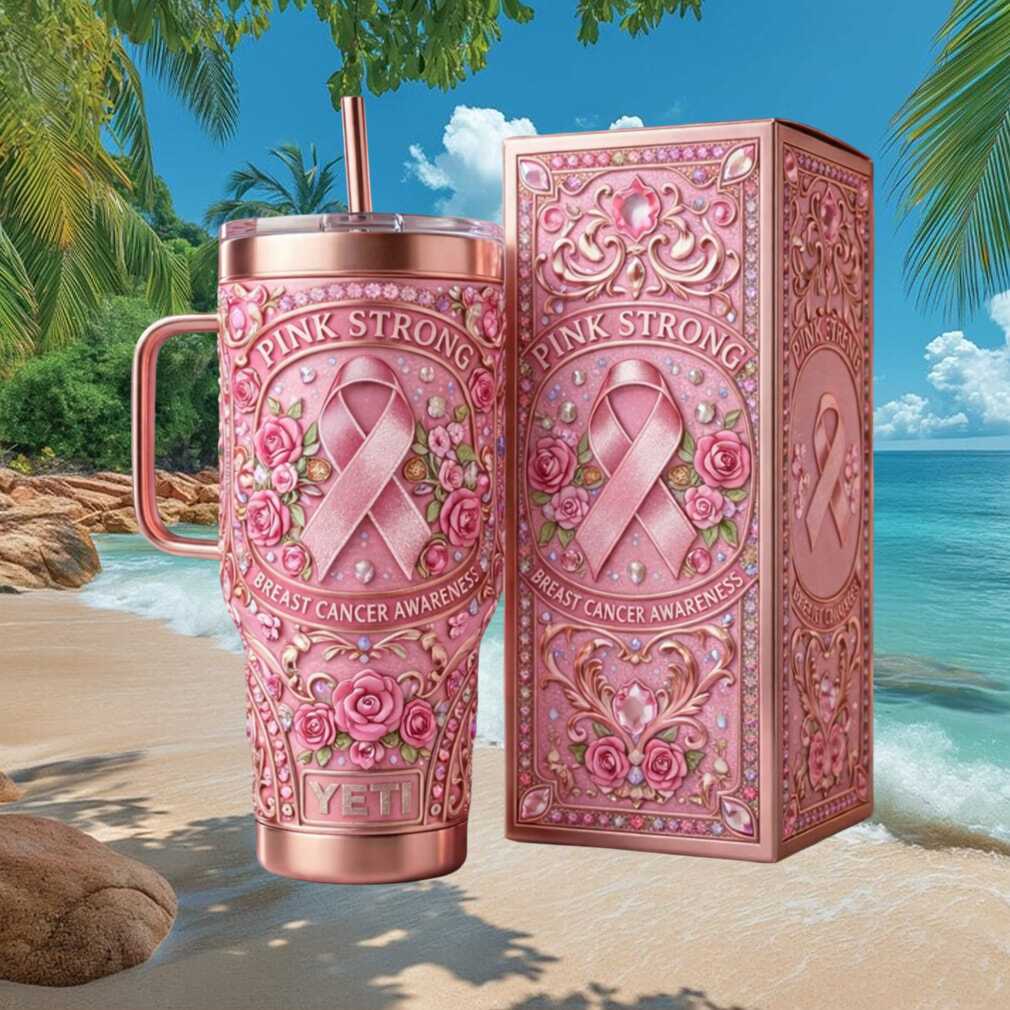 🥤 About Breast Cancer Awareness Pink Strong Rose Gold Ribbon Tumbler