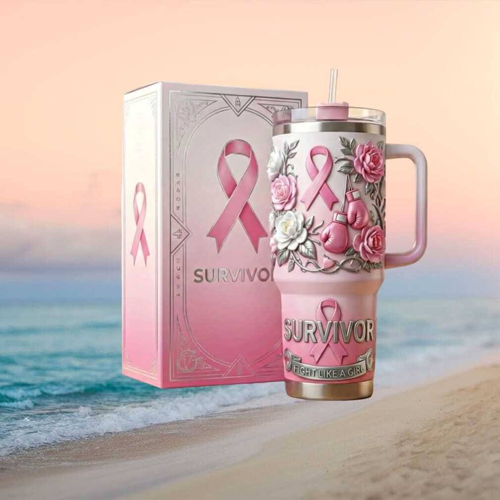 🥤 About Breast Cancer Awareness “Survivor” 3D Floral Tumbler Pink Ribbon Fight Like A Girl Gift