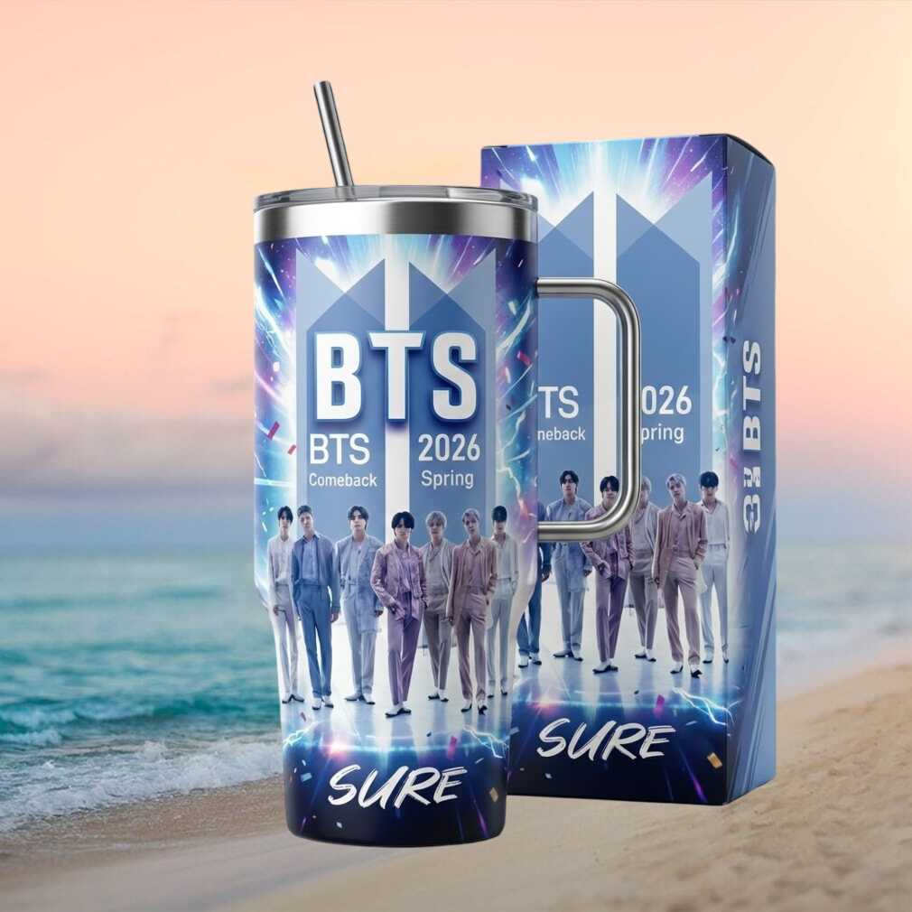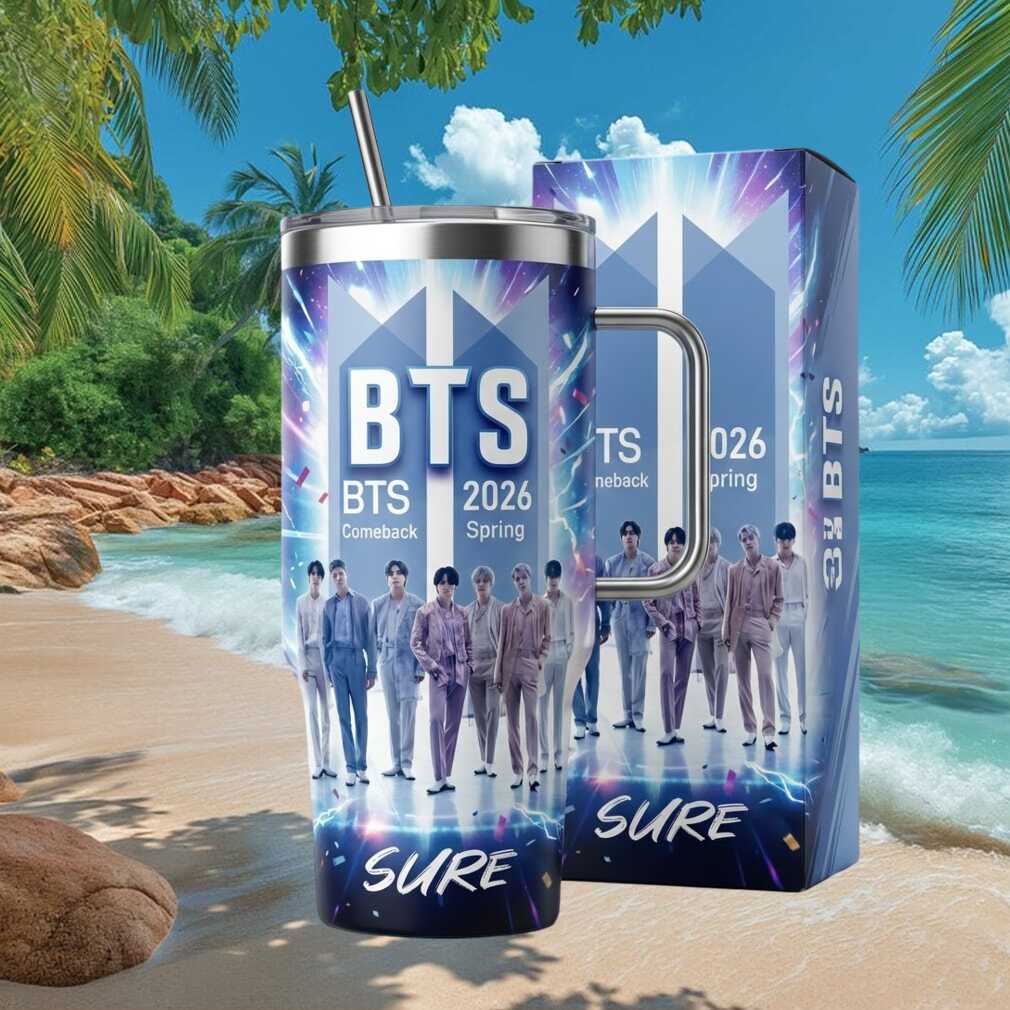 Welcome back, BTS! This 2026 Spring Comeback Special Edition tumbler features a beautiful group photo of all seven members in stunning comeback concept imagery. A precious collectible every ARMY member needs to mark this special return.
