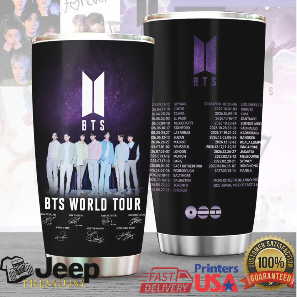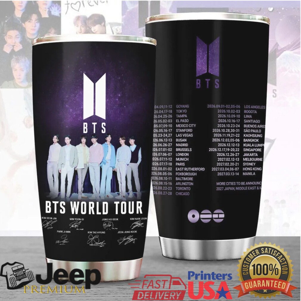 (BTS World Tour 2026 Concert Members Signatures Stainless Steel Tumbler)Built for the Journey, Styled for You Whether it’s your morning caffeine kick or a refreshing ice-cold drink after a long day, the Teejeep Premium Steel Tumbler is engineered to keep your beverages at the perfect temperature. Sleek, rugged, and ready for anything.