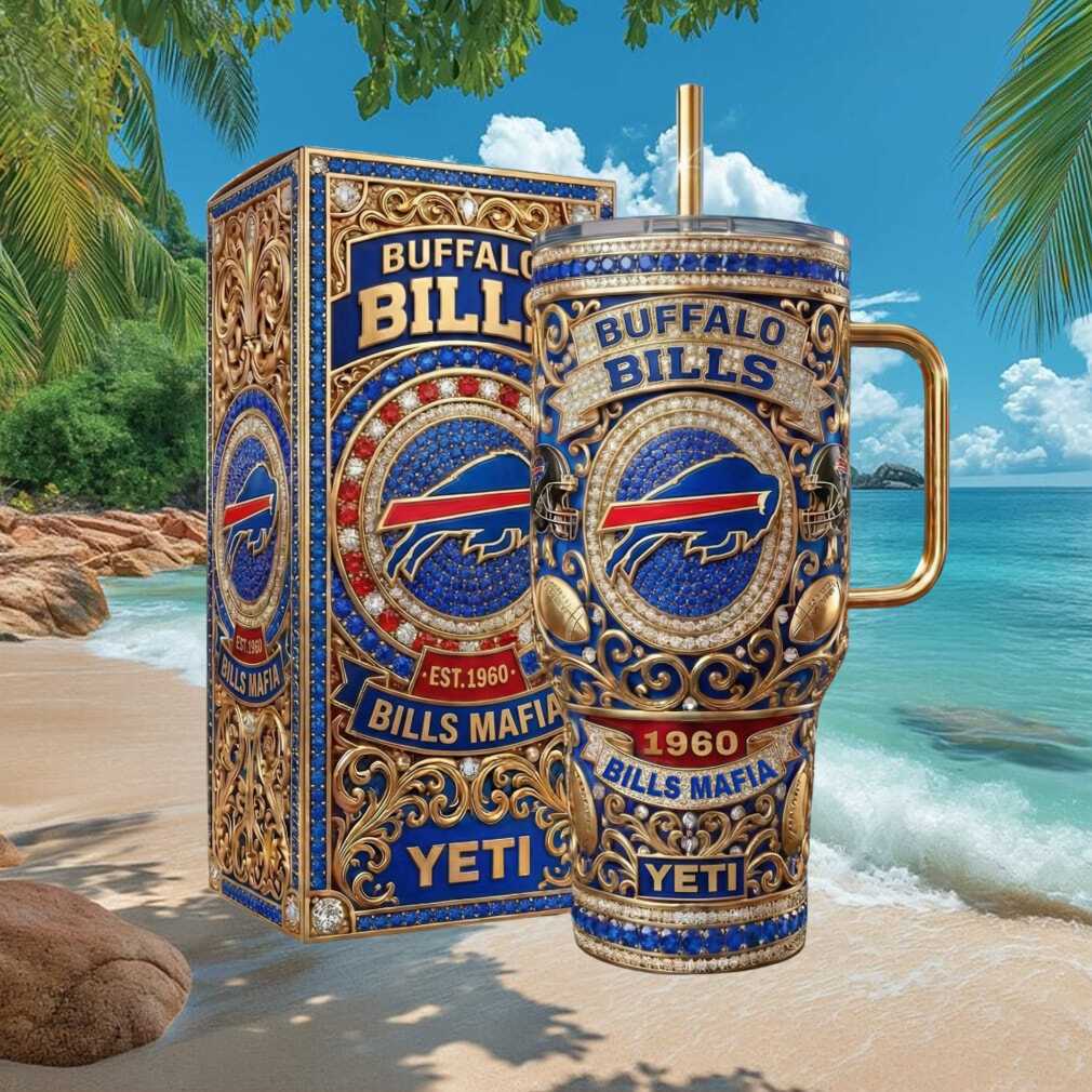 🥤 About Buffalo Bills Mafia Luxury Gold & Blue Rhinestone Insulated Tumbler