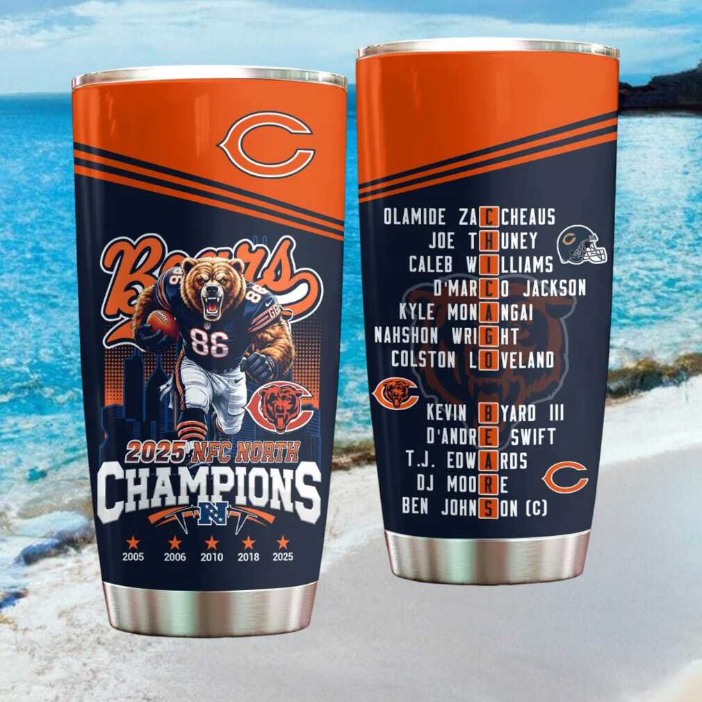 (Chicago Bears 2025 NFC North Champions “Monster of the Midway” Mascot Tumbler)Chicago Bears 2025 NFC North Champions “Monster of the Midway” Mascot Tumbler, Treat yourself or make a great gift for your loved ones