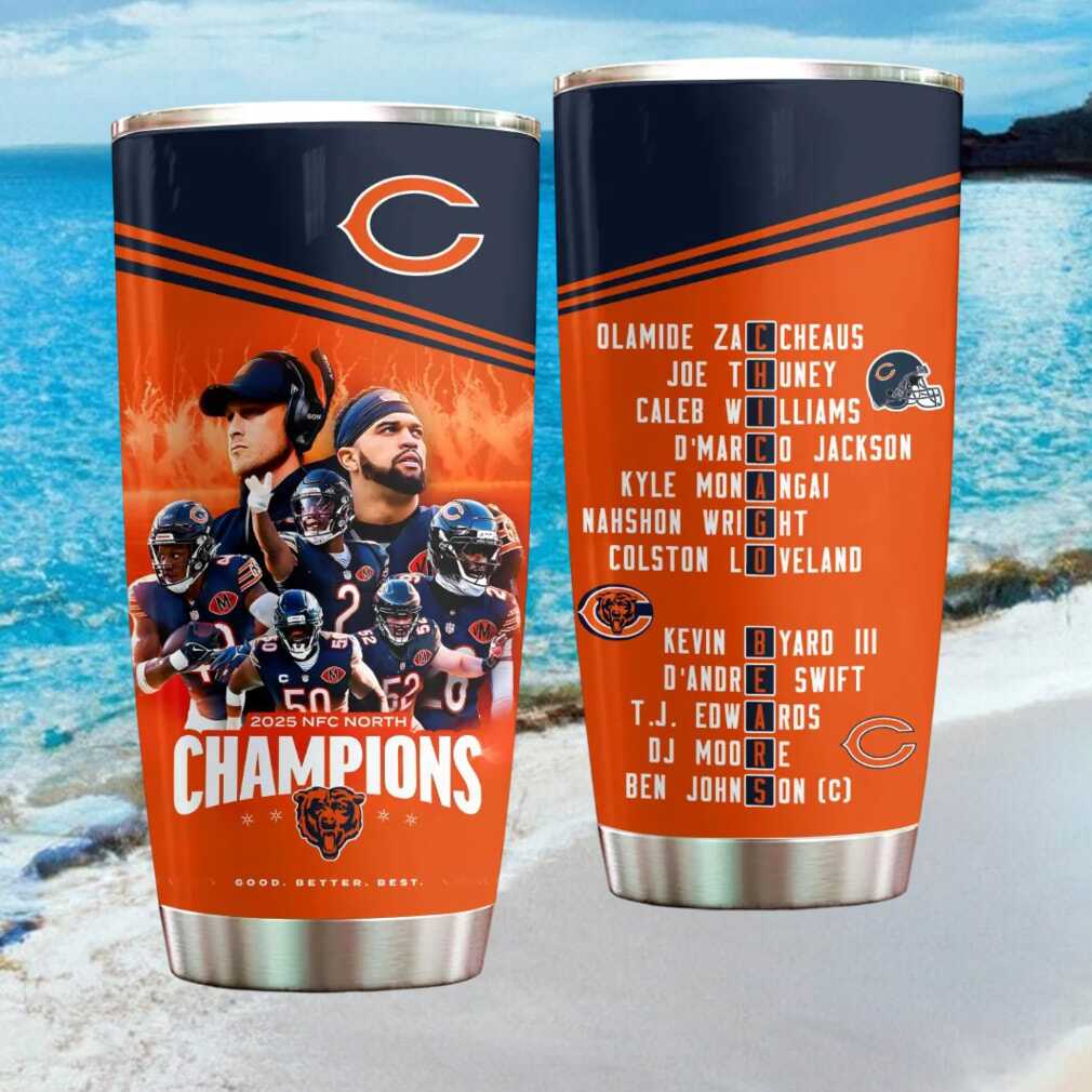 (Chicago Bears 2025 NFC North Champions Team Roster Photo Tumbler)Chicago Bears 2025 NFC North Champions Team Roster Photo Tumbler, Treat yourself or make a great gift for your loved ones
