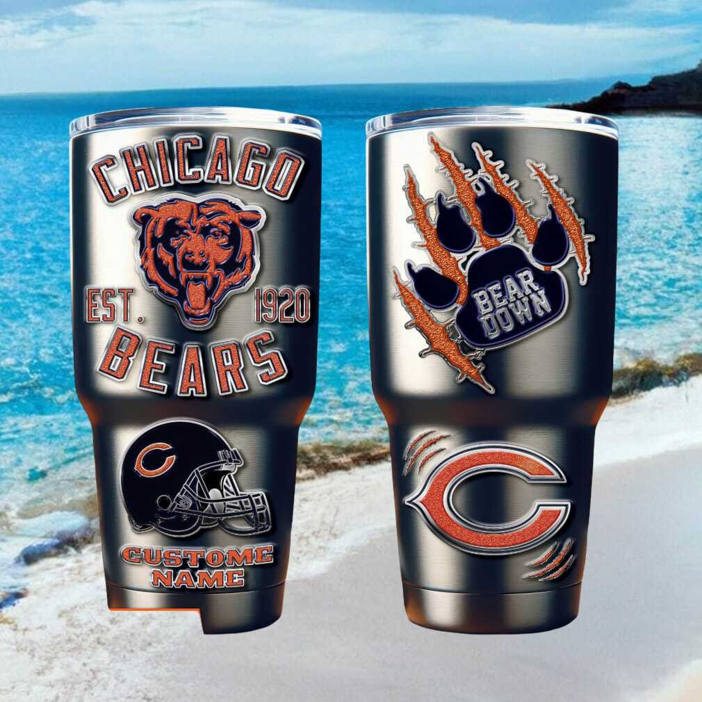(Chicago Bears Bear Down Personalized Tumbler Custom Name NFL Steel Mug)Chicago Bears Bear Down Personalized Tumbler Custom Name NFL Steel Mug, Treat yourself or make a great gift for your loved ones