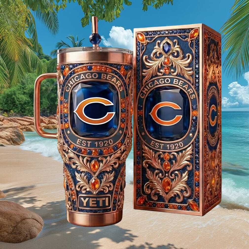 🥤 About Chicago Bears EST 1920 Luxury 3D Sapphire Gemstone & Copper Filigree Tumblers