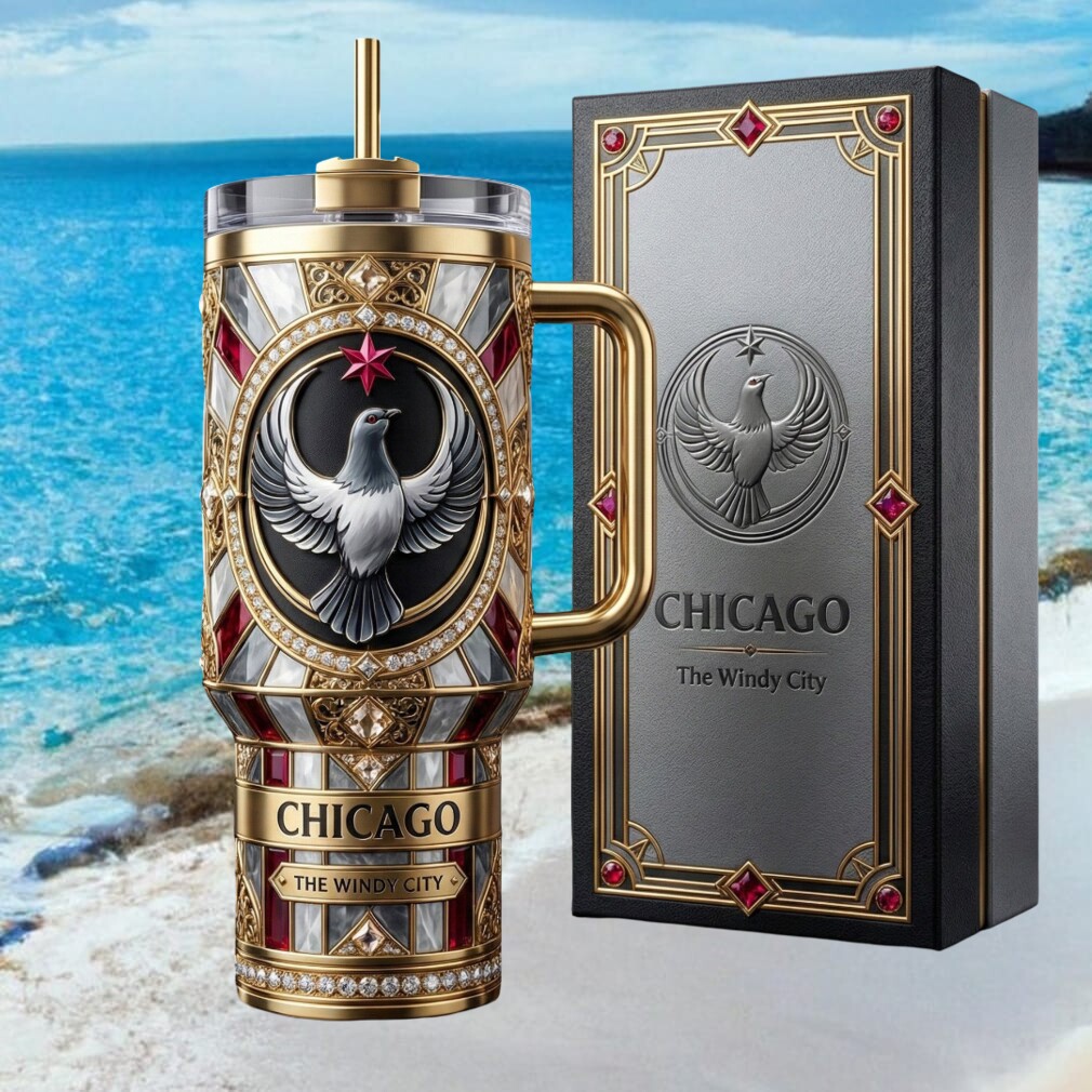 (Chicago The Windy City Luxury 40oz Tumbler Gold & Ruby Jeweled Gift Set)Chicago The Windy City Luxury 40oz Tumbler Gold & Ruby Jeweled Gift Set, Treat yourself or make a great gift for your loved ones