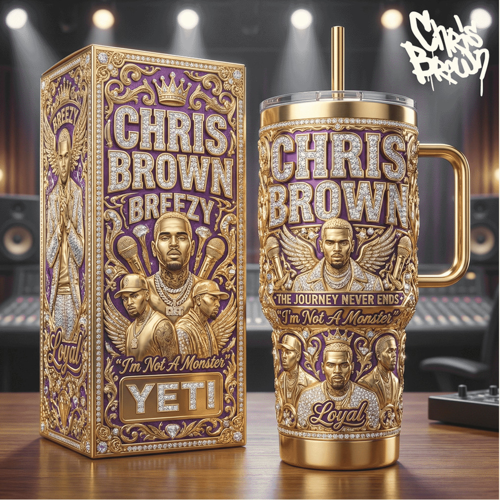 (Chris Brown “Loyal I’m Not A Monster” Gold & Purple 40oz Tumbler)Chris Brown “Loyal I’m Not A Monster” Gold & Purple 40oz Tumbler, Treat yourself or make a great gift for your loved ones