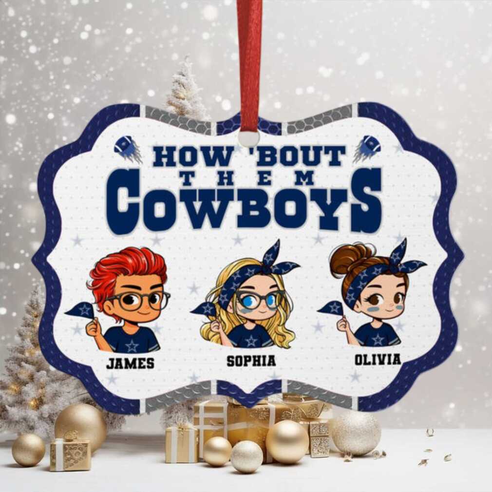 This Christmas Ornament Up to 10 Chibi Football How ‘Bout Them Cowboys Personalized Ornament lets you showcase your Cowboys pride and family connection during the holiday season. Perfect for passionate Cowboys supporters with big families, it brings a unique and festive spirit to your Christmas tree. It solves the problem of finding generic ornaments and creates a memorable keepsake for years to come. Made from durable materials, ensuring it lasts for many holiday seasons. Check the product images to see how your family’s names can be displayed on this adorable ornament.