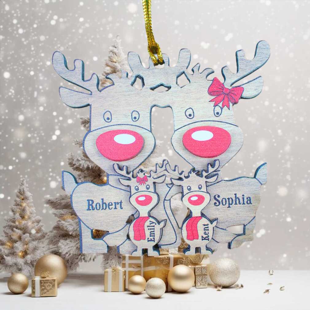 Picture this: a cozy Christmas Eve, the fireplace crackling, and your family gathered around the tree. What better way to celebrate your unique bond than with a personalized wooden ornament featuring a sweet reindeer family?