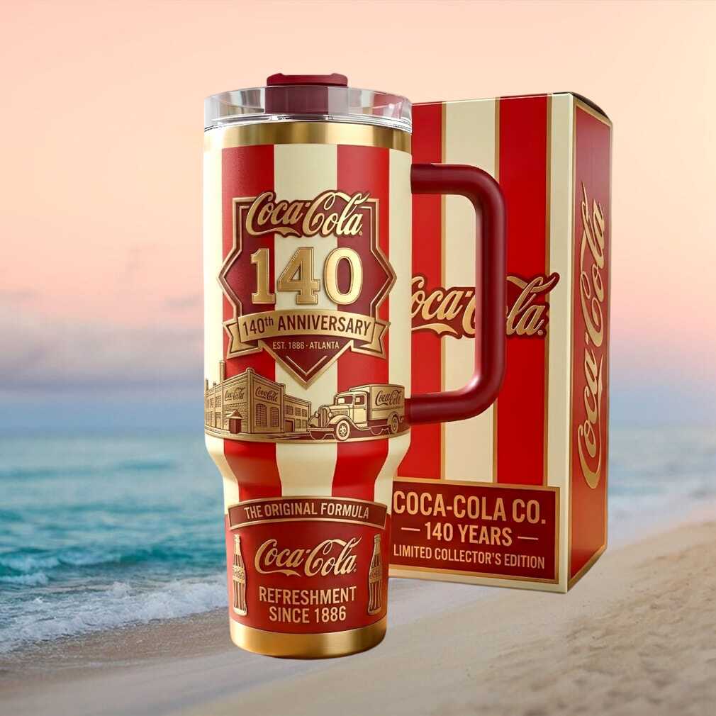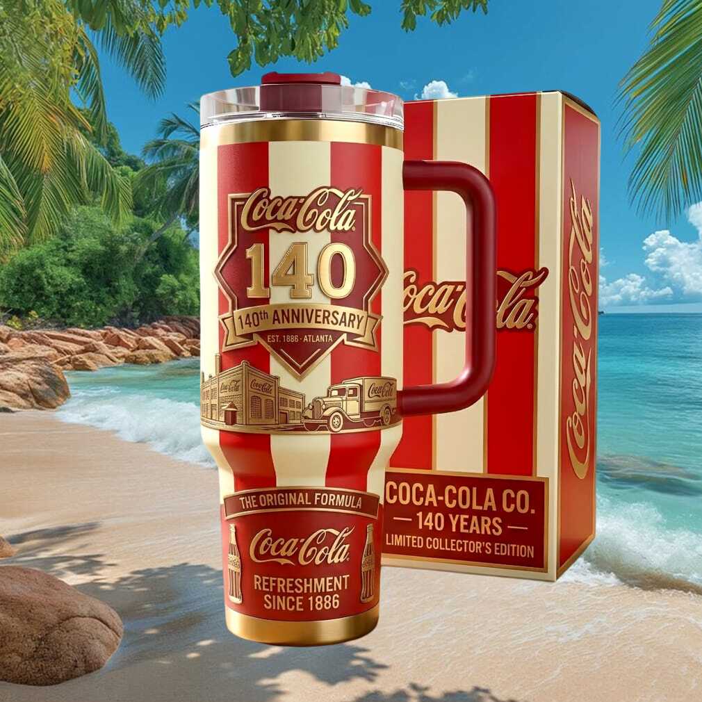 Commemorate a legendary brand with this exclusive Coca Cola 140Th Anniversary Limited Collectors Edition Striped collector’s tumbler. A beautifully designed keepsake for enthusiasts and collectors, perfect as a display piece or everyday drinkware.
