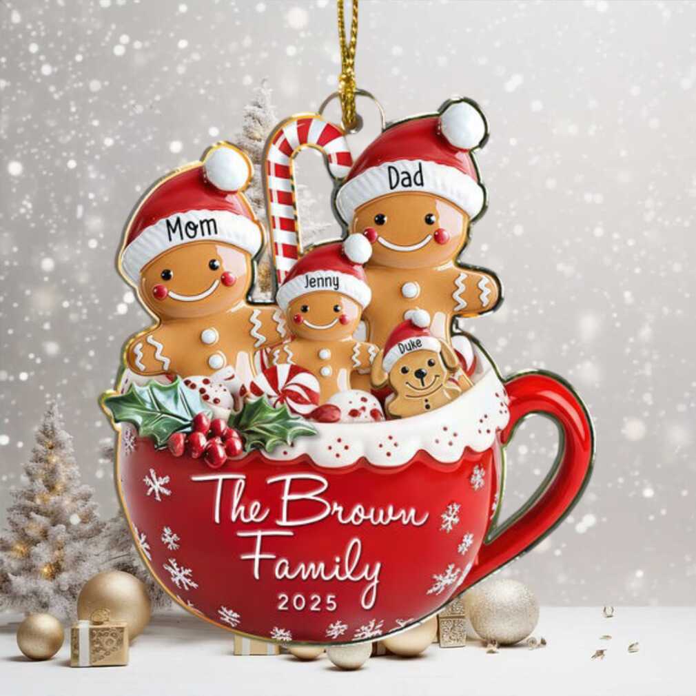 Picture this: your family, all cozy as gingerbread cookies, gathered around a Christmas tree, with your precious pet right there with you! This Custom Family Christmas Ornament isn’t just a decoration; it’s a delicious symbol of togetherness and the joy of the holiday season. Celebrate your unique family bond with a keepsake you’ll treasure for years to come.