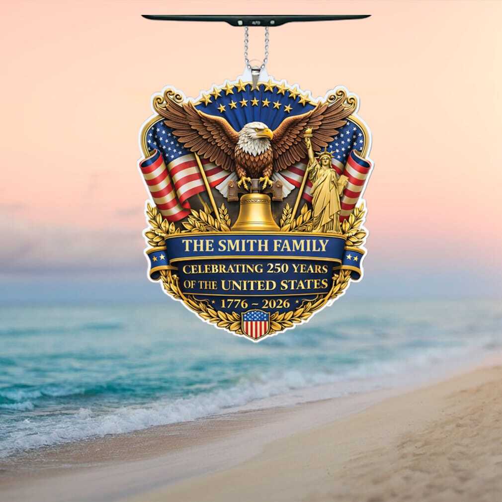 Celebrate 250 years of American history as a family with this custom hanging ornament. Personalized with your family name and featuring the historic 1776–2026 dates, this piece is a sentimental and meaningful tribute to both your family legacy and the nation’s greatest milestone.