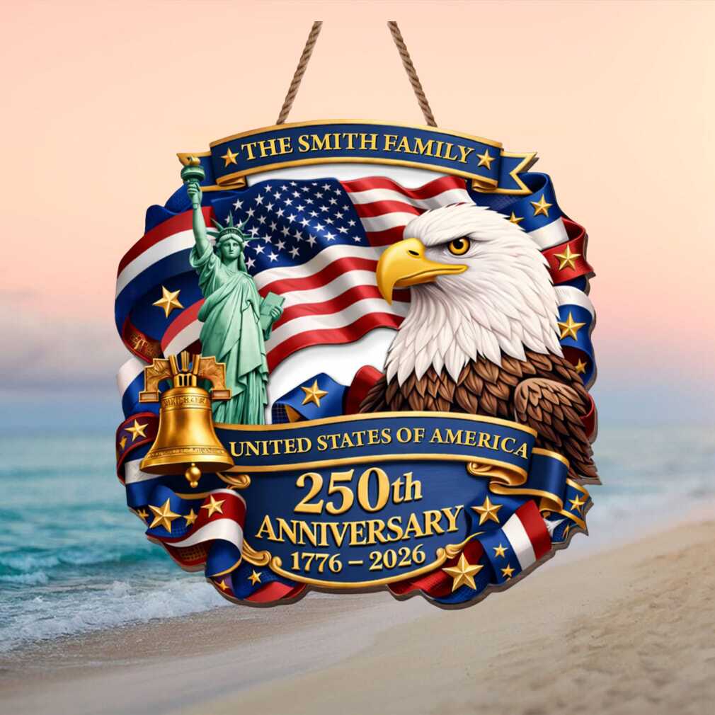 🥤 About Custom Family Name USA 250th Anniversary Eagle and Statue of Liberty Ornament
