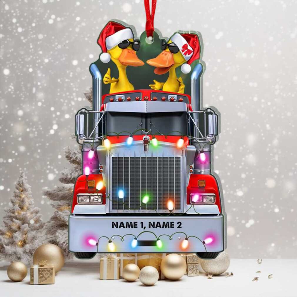 Imagine a heartwarming Christmas scene: a reindeer truck brimming with festive cheer, driven by a cute duck couple, their love shining brighter than the Christmas lights. This Custom Couple Ornament captures that magical feeling of holiday romance. If you’re searching for a unique and personalized gift to celebrate a special couple’s bond this Christmas, look no further!
