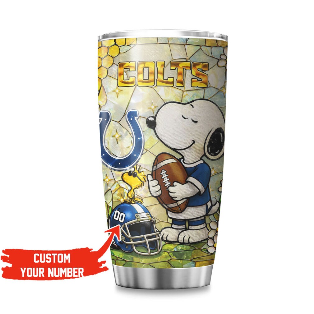 (Custom Indianapolis Colts Snoopy & Woodstock NFL Stained Glass Tumbler)Custom Indianapolis Colts Snoopy & Woodstock NFL Stained Glass Tumbler, Treat yourself or make a great gift for your loved ones
