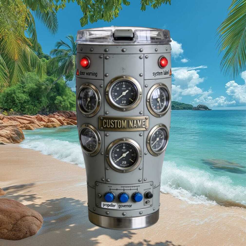 Make it uniquely yours with this fully customizable Custom Name Aircraft Cockpit Gauge Design Steampunk Mechanic tumbler. Add a name or personal touch to create a one-of-a-kind gift that stands out, while keeping beverages hot or cold for hours.