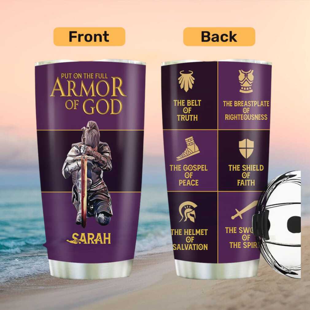 (Custom Name Armor of God Kneeling Knight Tumbler Purple and Gold Edition)Custom Name Armor of God Kneeling Knight Tumbler Purple and Gold Edition, Treat yourself or make a great gift for your loved ones