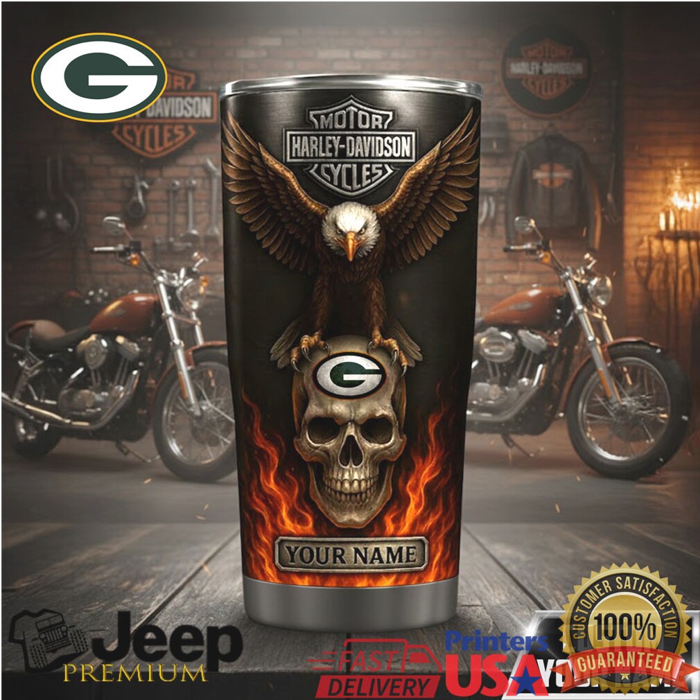 ()Custom Name Green Bay Packers & Harley Davidson Skull Tumbler, Sport Tumbler and Funny Tumbler