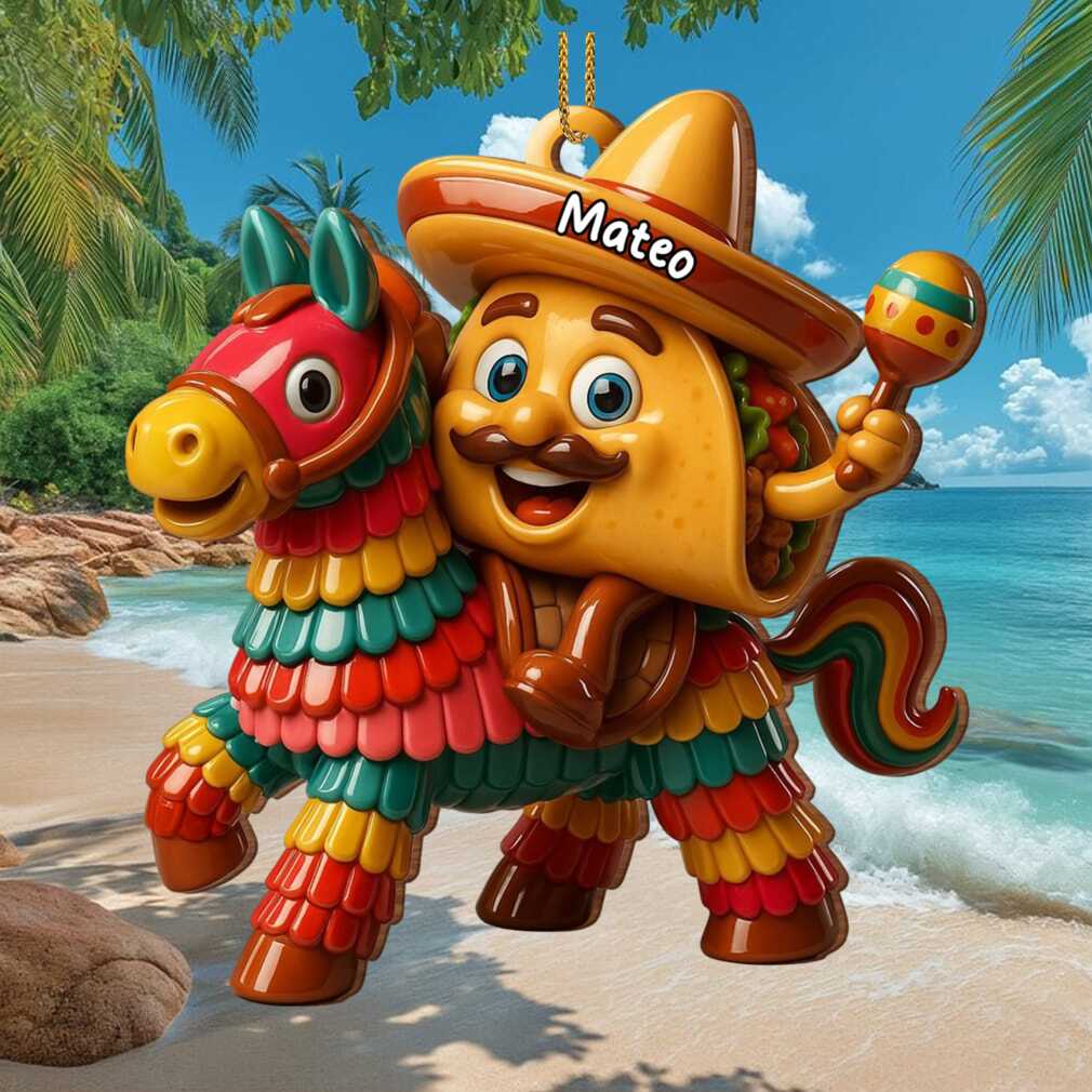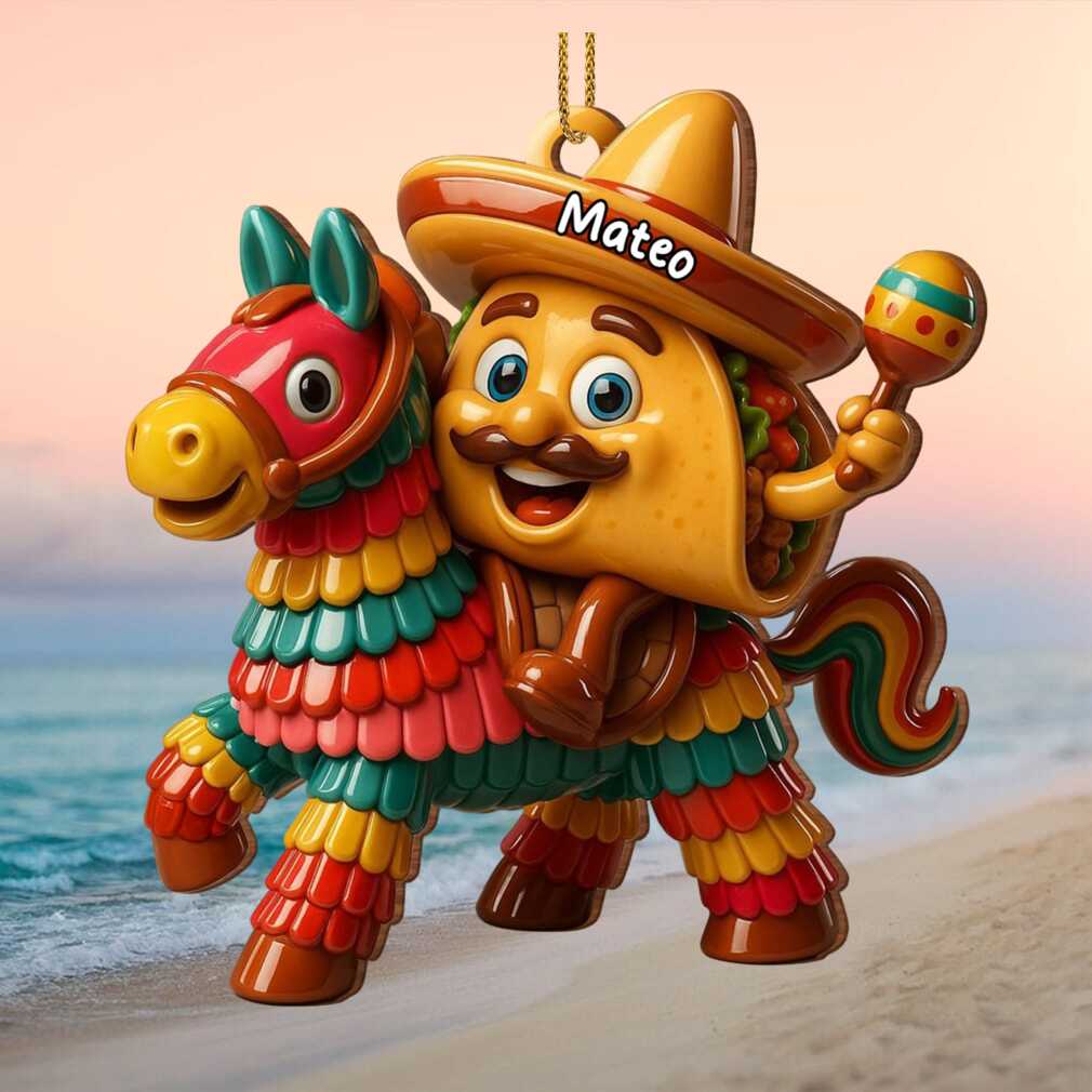 🥤 About Custom Name Mexican Taco Riding Pinata Fiesta Hanging Ornament