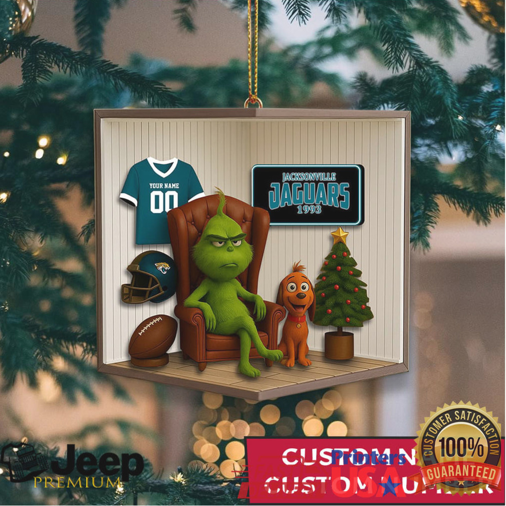 🥤 About Custom Name Number Jaguars Grinch Holiday Ornament